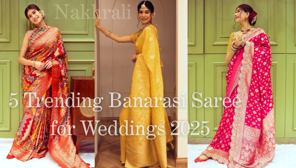 Discover the latest Banarasi saree designs 2025 for Indian weddings. Expert styling tips & traditional sarees at Nakhrali. Shop now!
