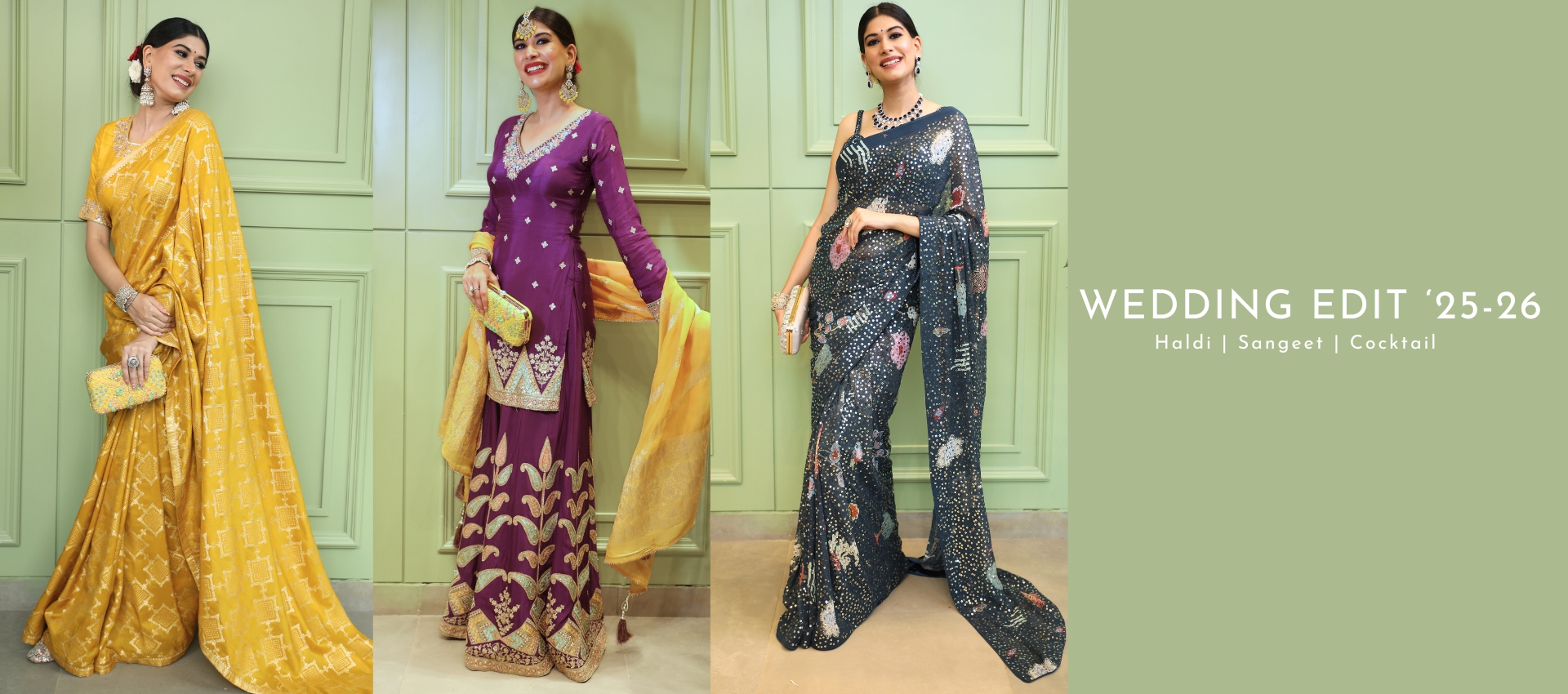Discover stunning wedding outfit ideas for Haldi, Sangeet lehenga, and cocktail party outfits from Nakhrali's Wedding Edit 2025-26. Shop designer lehengas, bridal gharara, indo-western wear & more. Expert styling tips included!