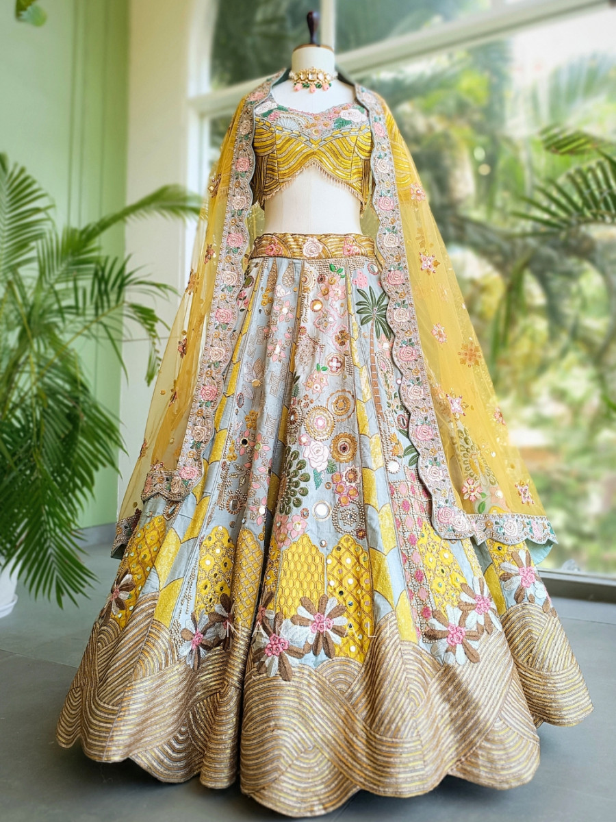 - Every piece in our collection reflects: Handcrafted lehengas made with love