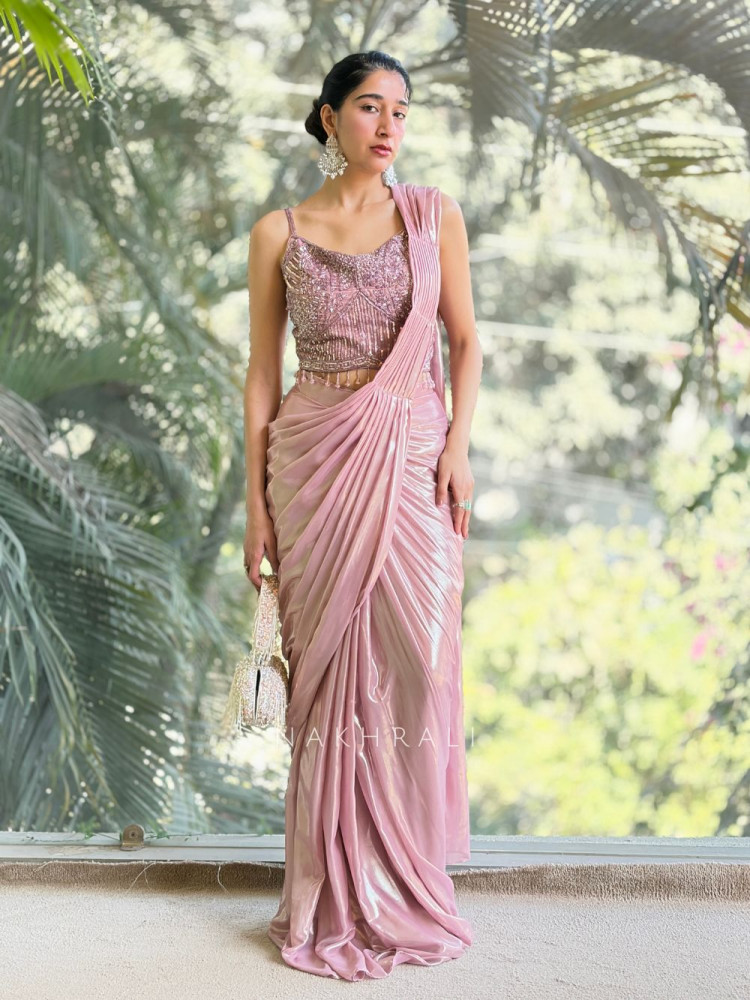 Ethereal Brown Drape Saree with Sequin & Cut Dana Blouse