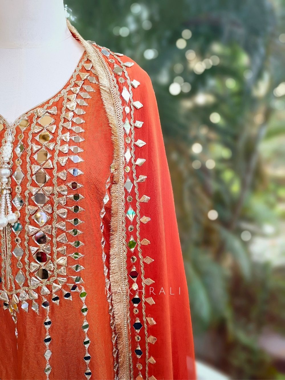 Aaranya Orange Mirror Embroidered Anarkali Set