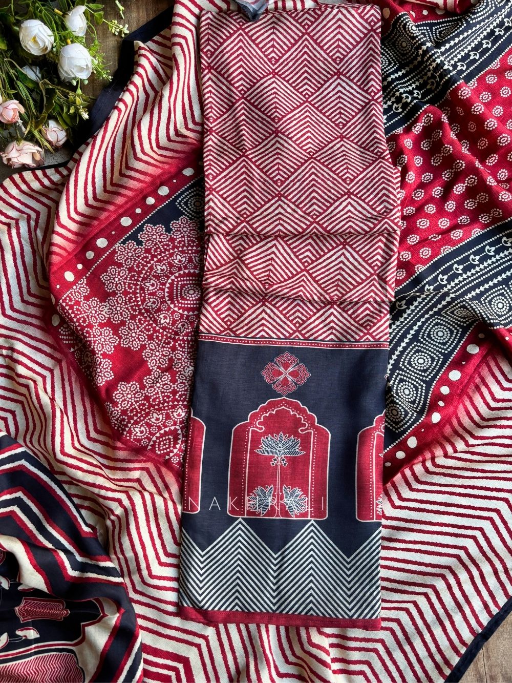 Aarohi Maroon Cotton Silk Printed Dress Material