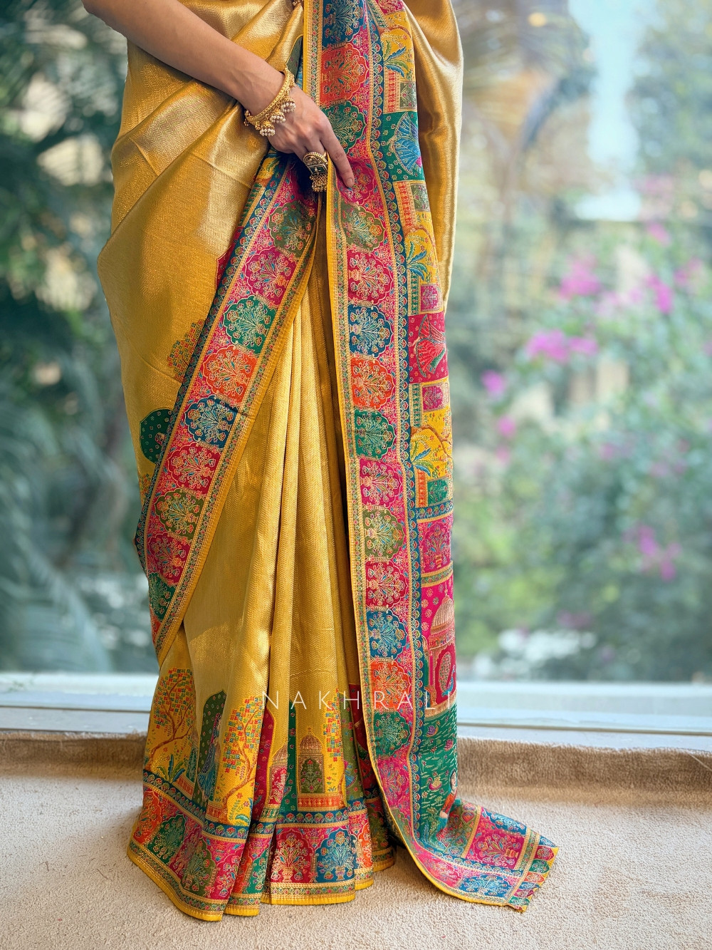 Aarunika Mustard Banarasi Silk Saree with Heritage Weave Work