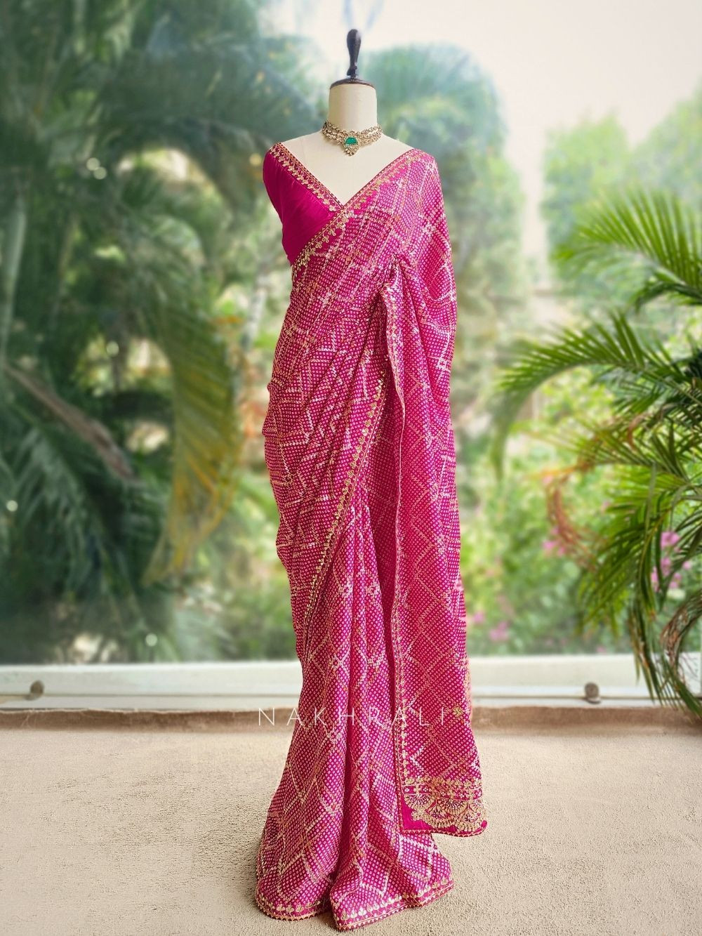 Aarvika Pink Bandhani Saree with Gota and Zari Border