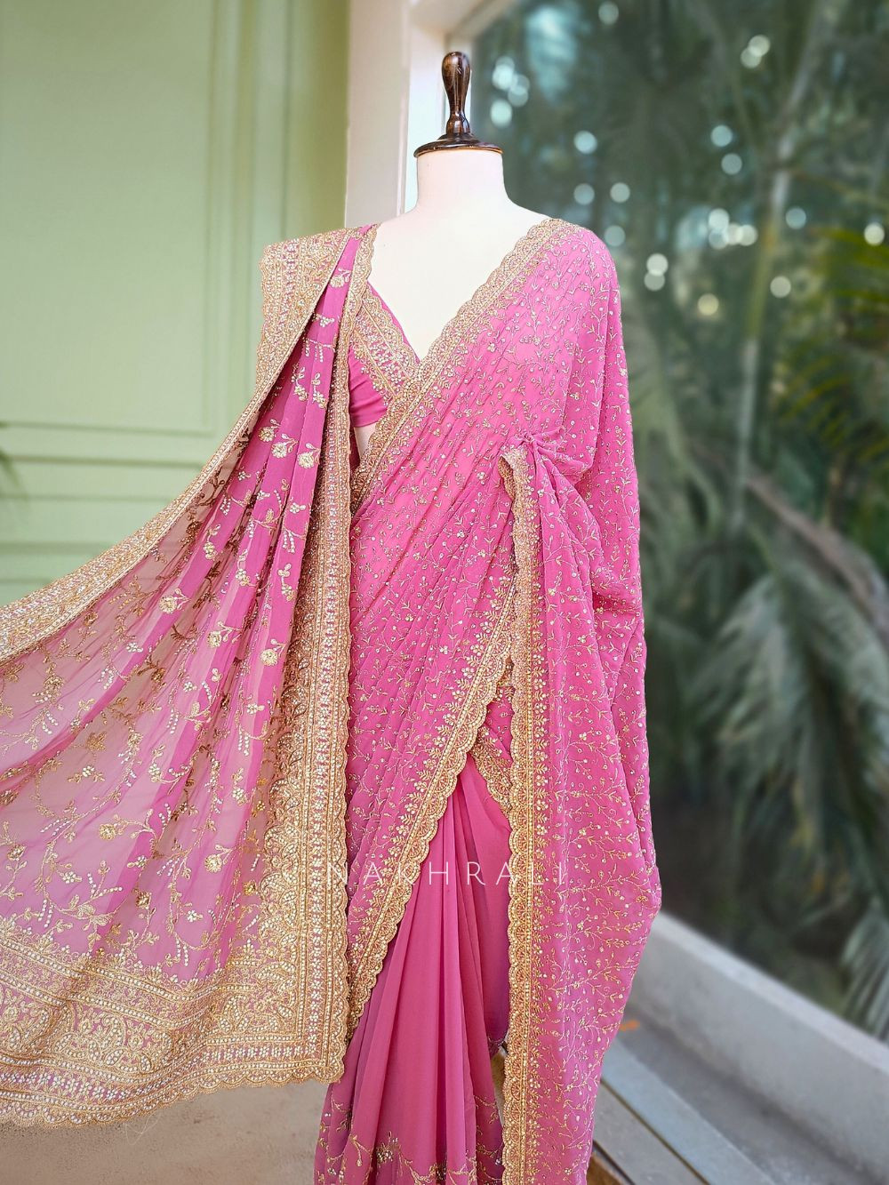 Ajmal Pink Two-Piece Saree Set with Dupatta