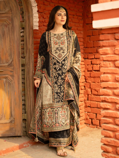 Aliyah Ember is where old-world artistry meets modern-day poise. Designed in a graceful palette of black and cream, this dual-tone kurta palazzo set is brought to life with intricate zari and gota patti work—adding a soft glow to every fold. The effortless silhouette balances structure with flow, making it a perfect choice for festive get-togethers, wedding rituals, or statement daywear. It’s a timeless blend of contrast, culture, and quiet luxury.