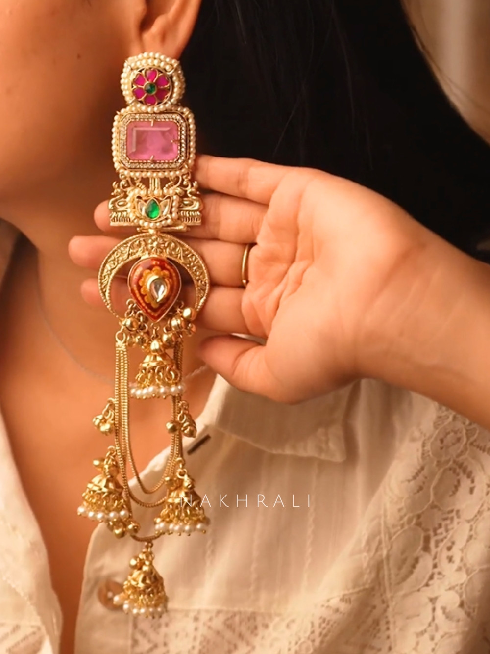 These long hanging danglers are crafted with a graceful length and a pretty, eye-catching design that moves beautifully as you do. They frame the face effortlessly, adding elegance without feeling heavy or overdone.