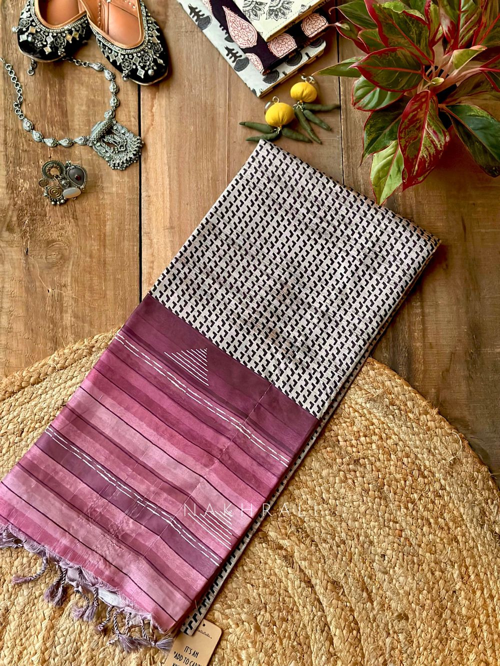 The Amoli Pink Printed Silk Saree embodies effortless sophistication. Crafted from fine silk, it features delicate hand-inspired prints in soothing pink tones that exude feminine charm. Lightweight and fluid, this saree drapes beautifully, making it ideal for festive gatherings, cultural events, or everyday grace. Its timeless print and smooth texture bring together heritage craftsmanship and contemporary minimalism in one elegant drape.