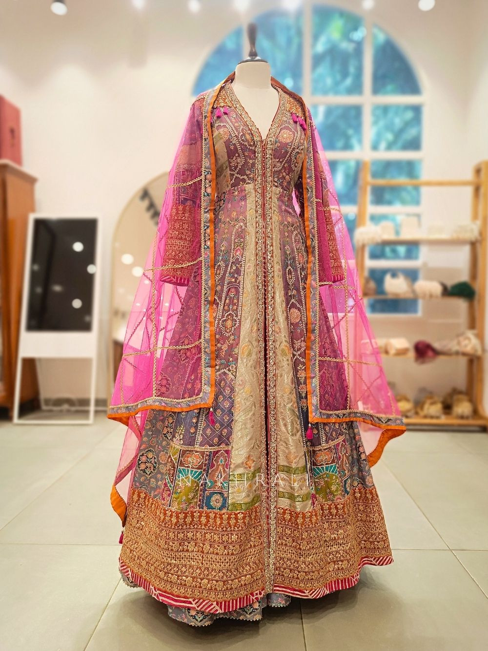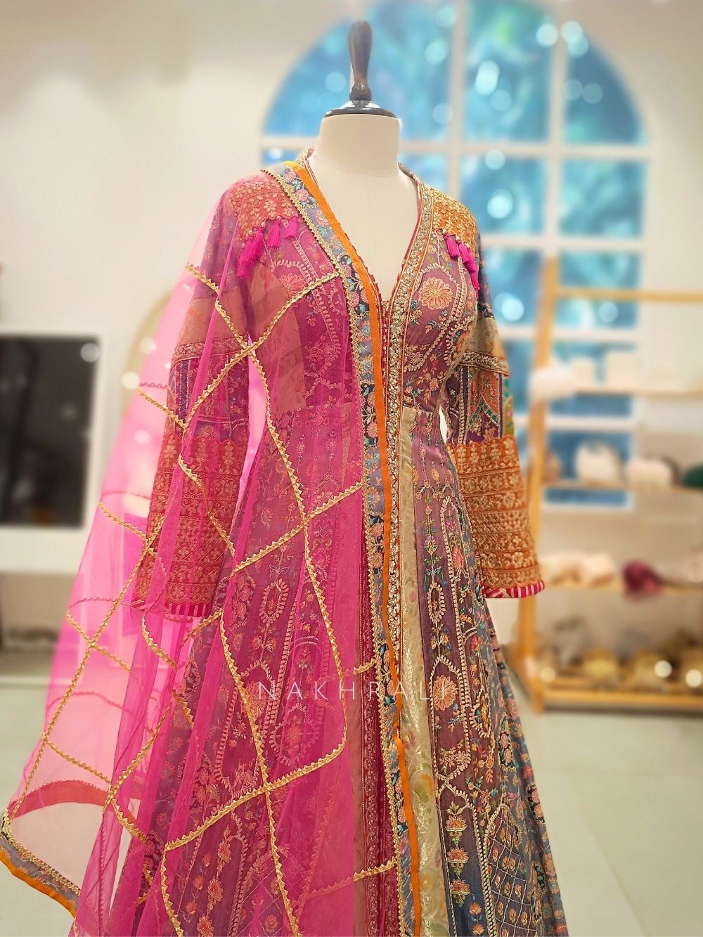Dry clean only to preserve embroidery and gota work