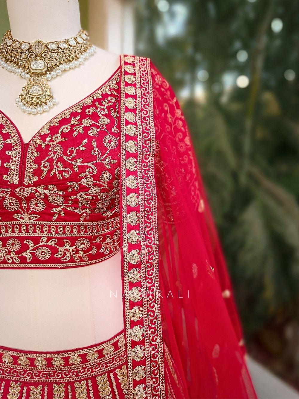 Anvika Red Bridal Lehenga with Zari Thread Work