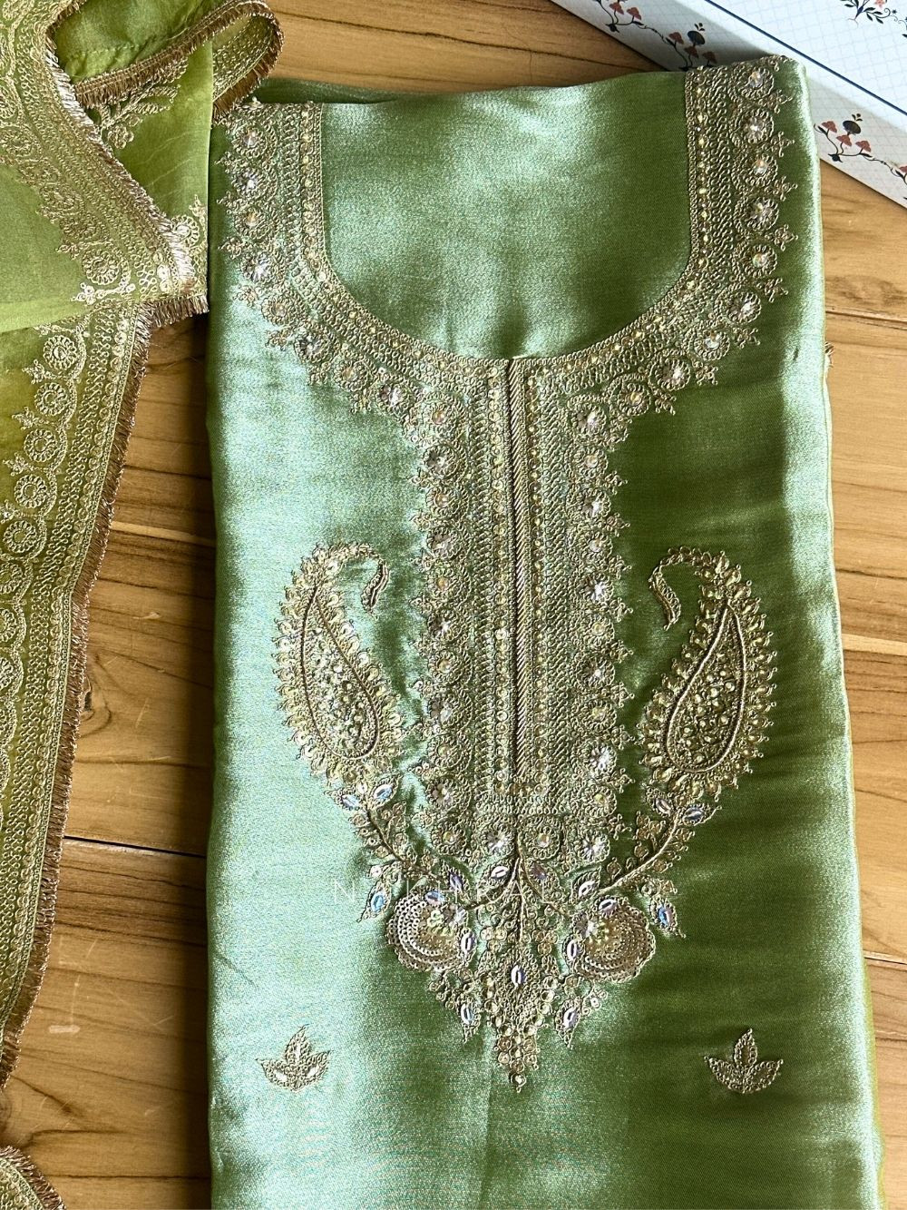 Aroha Green Paisley Dress Material