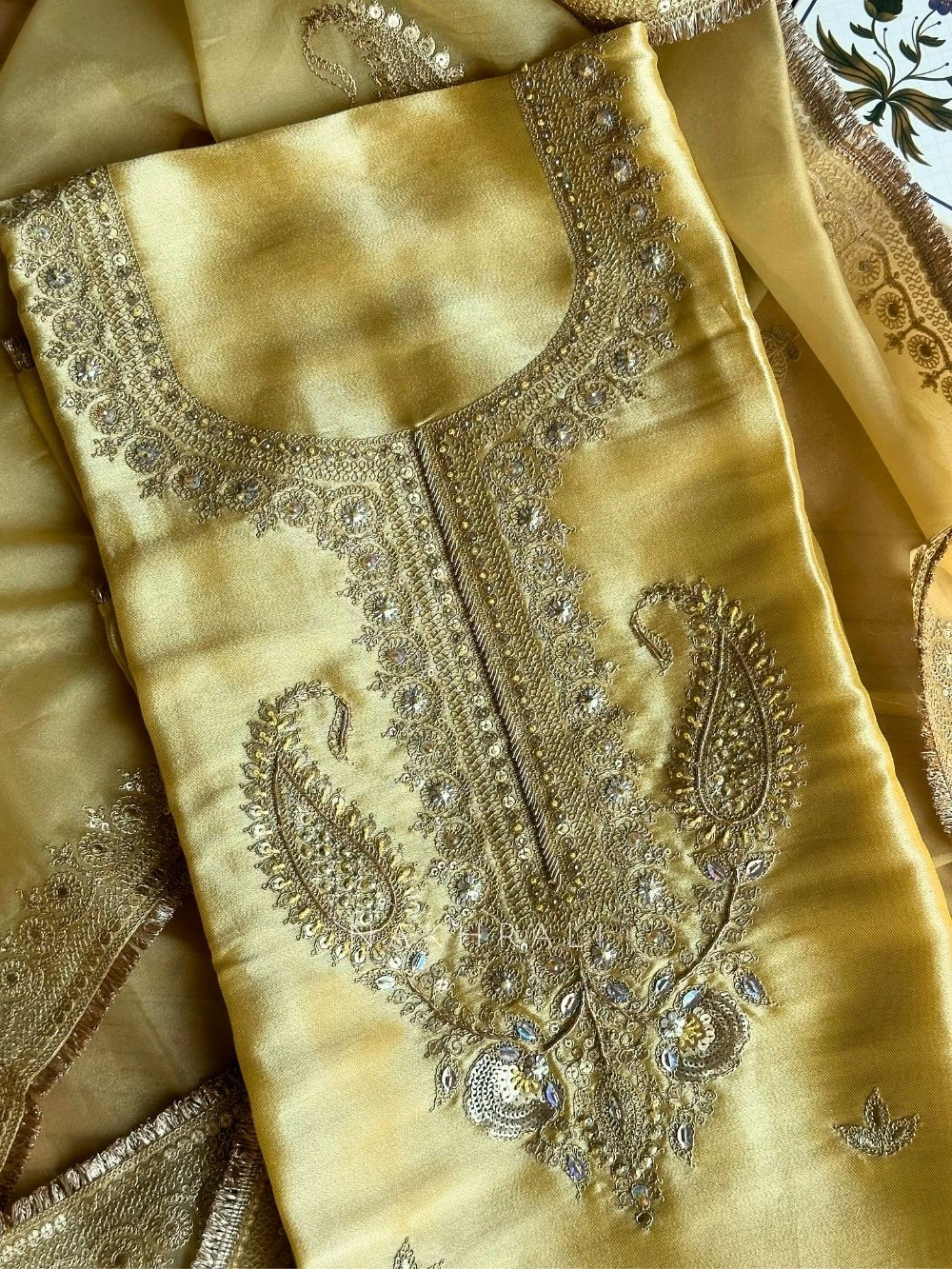 Aroha Yellow Paisley Dress Material
