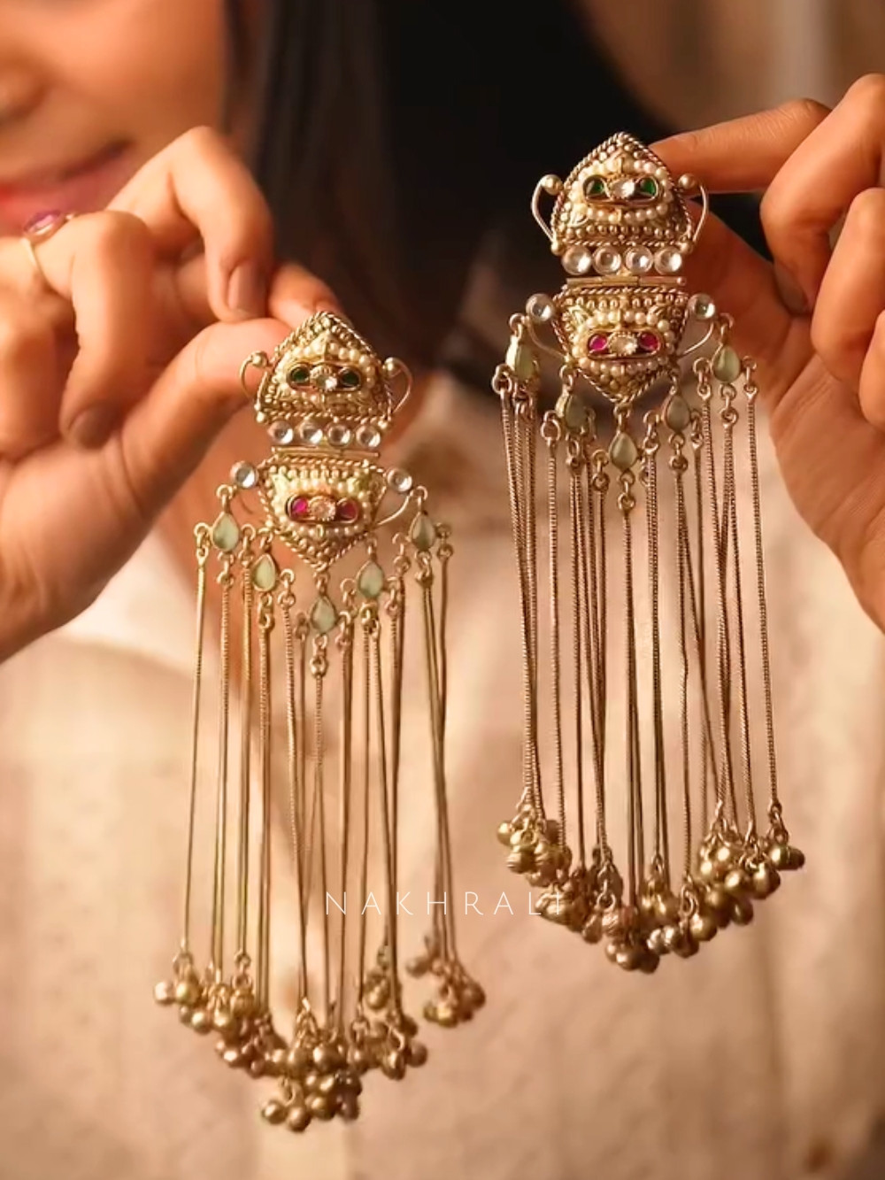 These long hanging danglers are crafted with a graceful length and a pretty, eye-catching design that moves beautifully as you do. They frame the face effortlessly, adding elegance without feeling heavy or overdone.