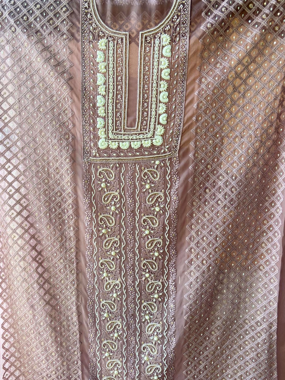 Avarna Mauve Pearl Beads Embroidered Dress Material