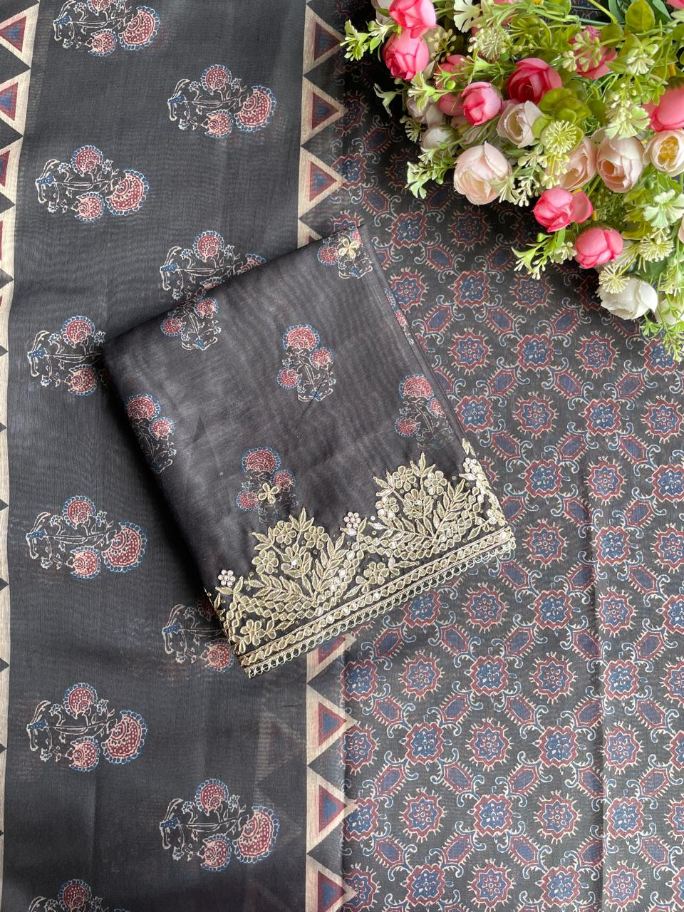 Black Grace Printed Dress Material with Embroidered Dupatta