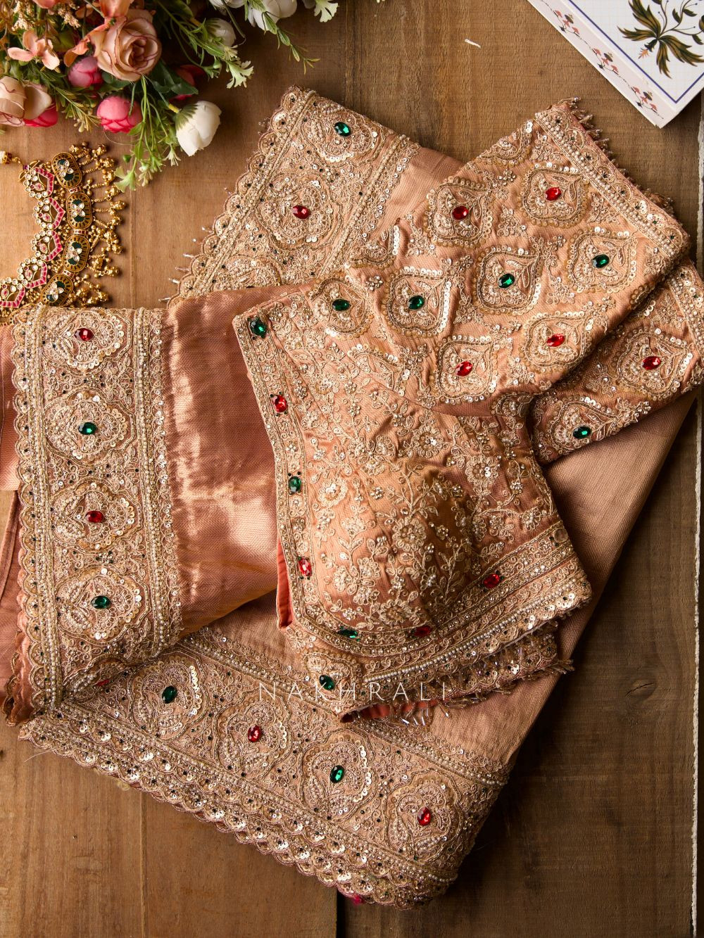 Bloomcrest Peach Embellished Saree with Readymade Blouse