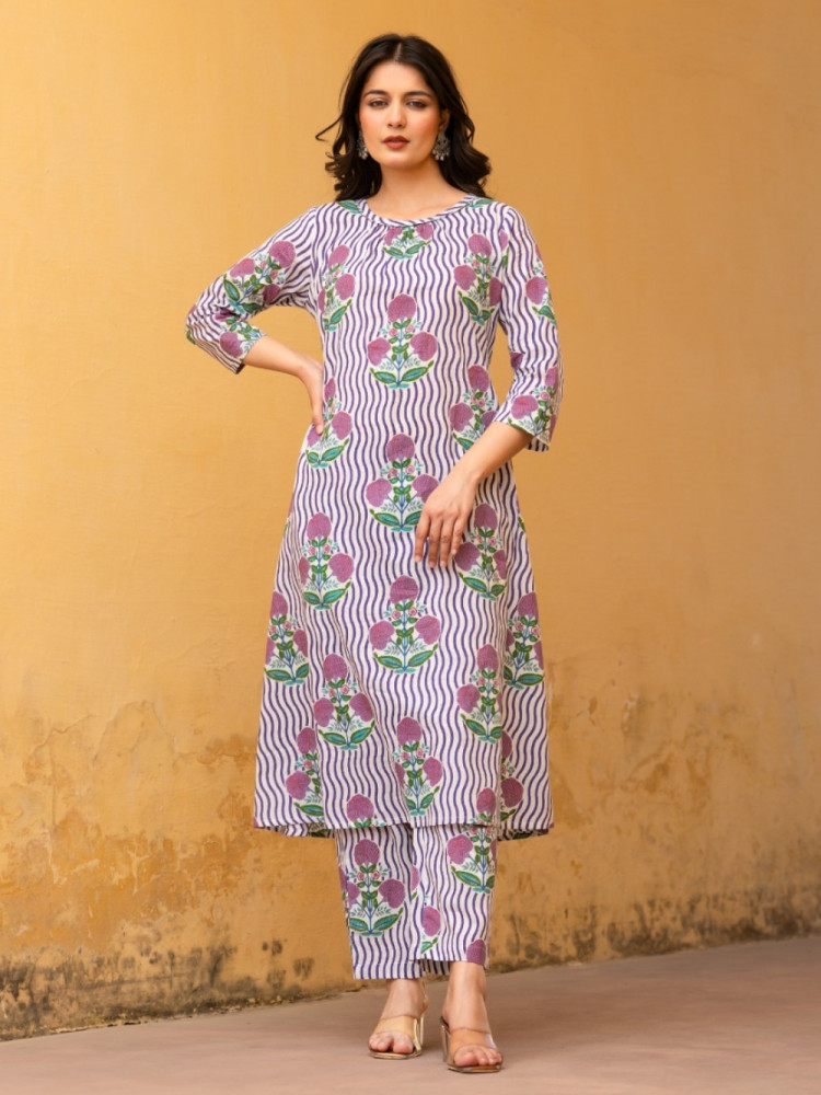 The Bloomline Pant Kurta Set redefines comfort with its signature A-line silhouette—both in the kurta and the pants. Crafted in breathable fabric and adorned with soft floral prints, the set brings ease and elegance together. The flared kurta offers a flattering fit, while the relaxed, A-line inspired pants add grace to every step. Ideal for long days, casual get-togethers, or a relaxed festive look, it’s a wardrobe essential with an airy charm.