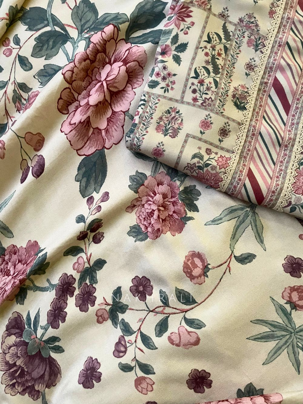 Bloomscape is a thoughtfully curated woolen dress material designed for winters that call for warmth without compromising on elegance. Each set features a beautifully printed woolen fabric adorned with delicate floral motifs and balanced layouts, giving it a refined yet easygoing appeal. The prints feel soft, graceful, and wearable—ideal for everyday winter outings, office wear, or relaxed gatherings. Paired with a solid-toned bottom fabric, the set offers versatility for stitching into a straight kurta, A-line suit, or relaxed winter silhouette. Comfortable on the skin and visually calming, Bloomscape is made for those who love subtle florals and timeless winter dressing.