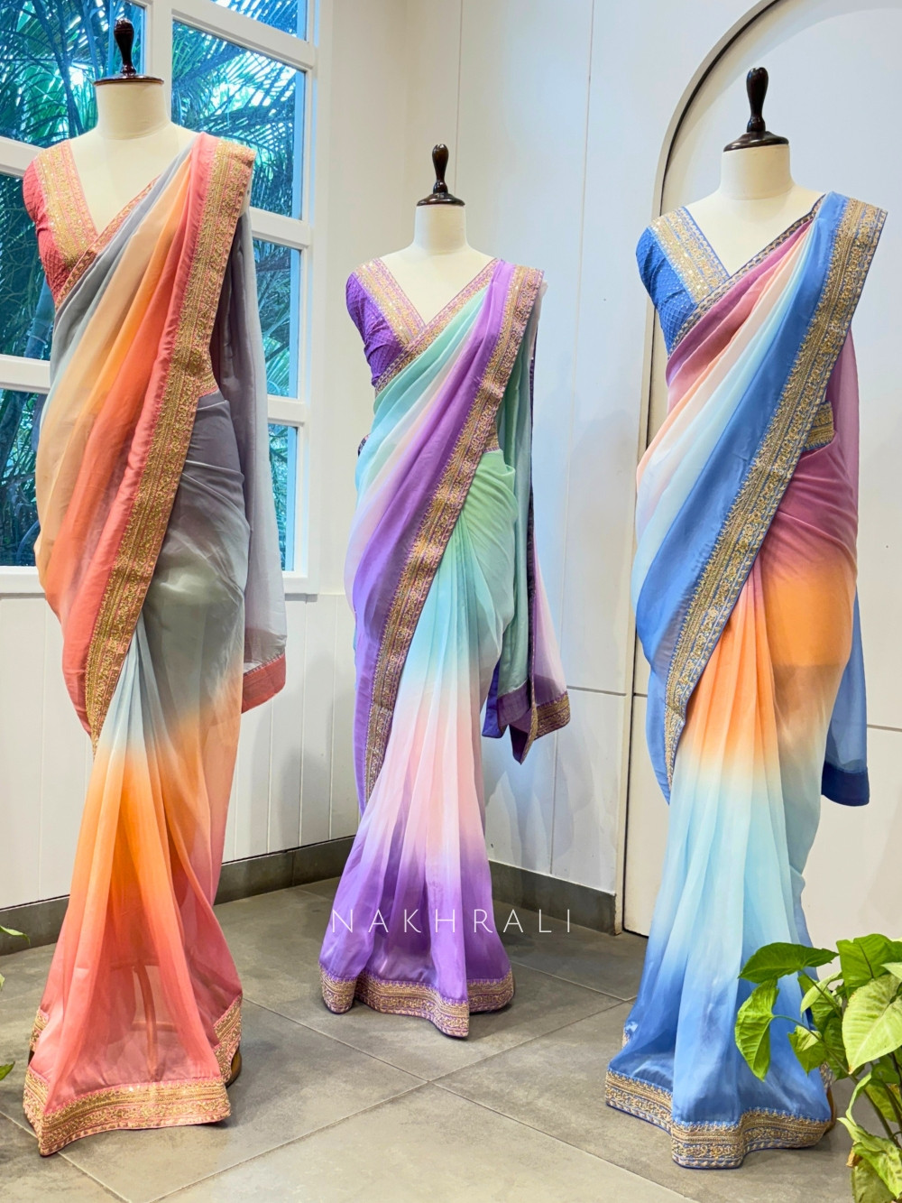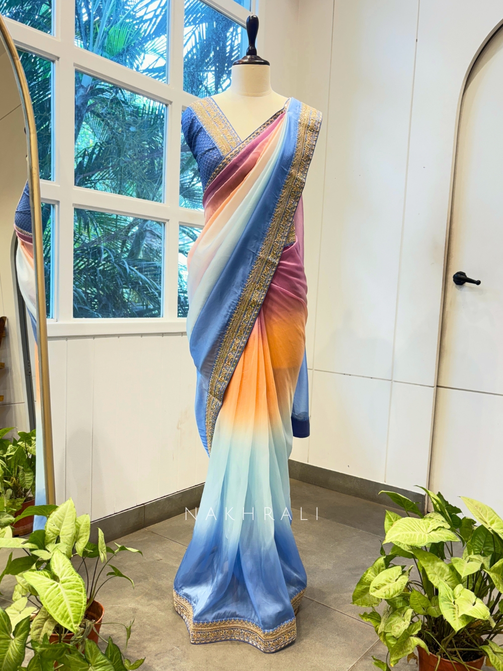 Blossom Shyne Blue Ombre Saree with Zari Work