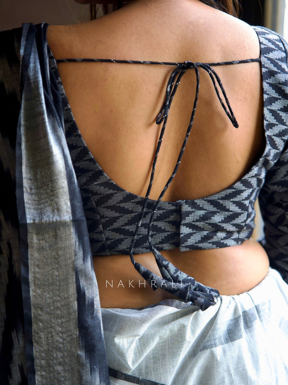 Chandani is crafted for women who love effortless elegance with everyday comfort. Made in breathable cotton, the blouse features a bold geometric print that adds character without overpowering your saree. The refined neckline enhances the frame, while the full sleeves give it a polished, contemporary look. The back opening with tie detailing ensures an adjustable, flattering fit. Pair it with handloom, cotton or linen sarees for an elevated, artful aesthetic suited for daily wear or intimate gatherings.