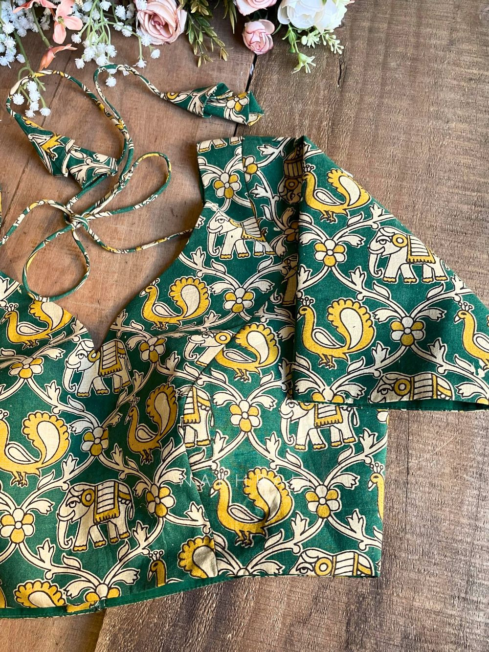Chandani is a thoughtfully tailored cotton printed blouse designed for comfort, breathability and effortless pairing with sarees and skirts. It features a soft sweetheart neckline at the front, structured bust panels for a flattering fit, and a back tie-up closure that allows easy adjustment. The blouse comes with elbow-length sleeves and traditional printed motifs inspired by classic Indian patterns. Lightweight and easy to wear, Chandani is ideal for long hours, daily ethnic looks and relaxed festive dressing. Available in five colour options—red, green, white, blue and black—this blouse works seamlessly across multiple saree styles.