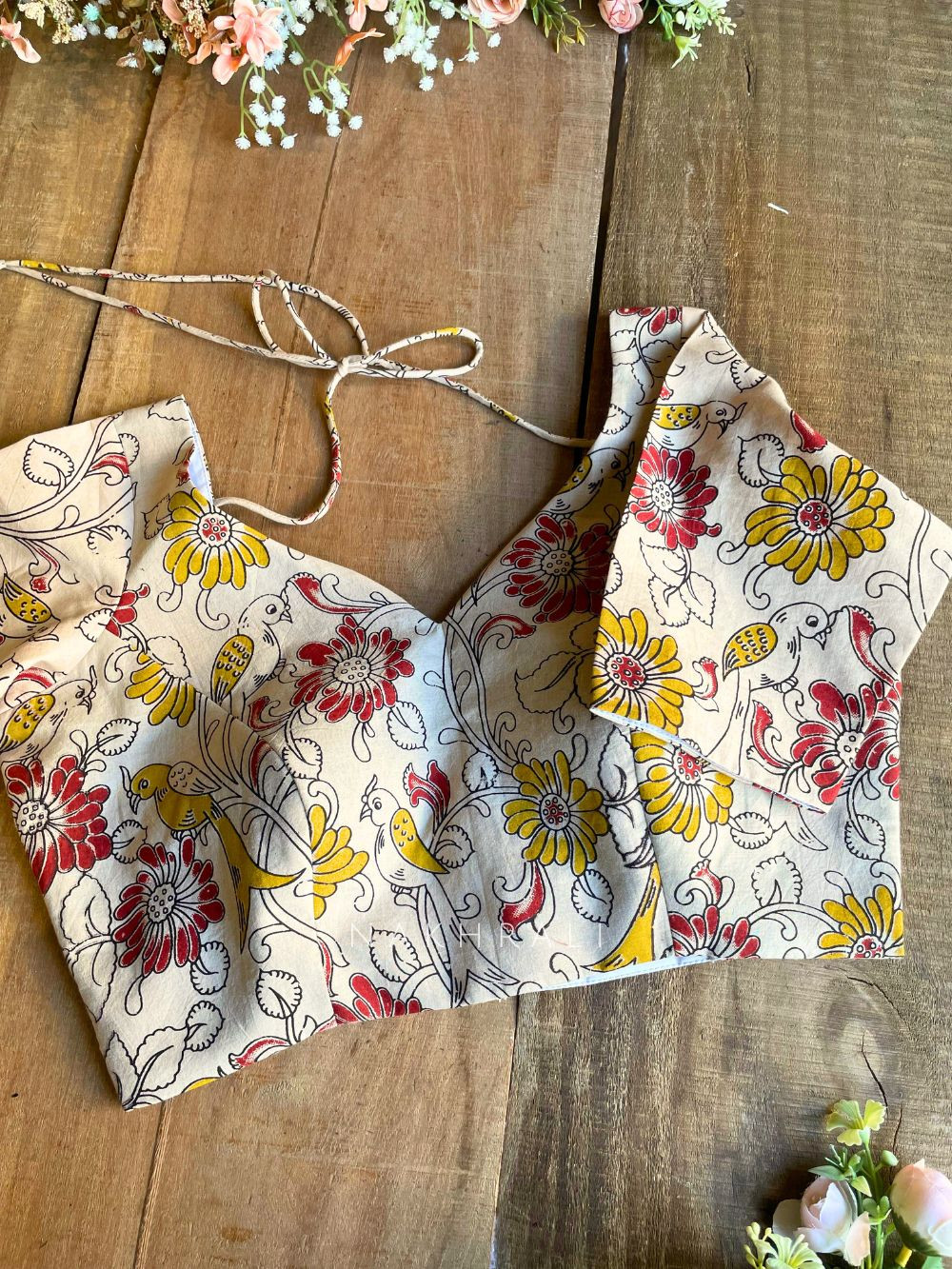 Chandani is a thoughtfully tailored cotton printed blouse designed for comfort, breathability and effortless pairing with sarees and skirts. It features a soft sweetheart neckline at the front, structured bust panels for a flattering fit, and a back tie-up closure that allows easy adjustment. The blouse comes with elbow-length sleeves and traditional printed motifs inspired by classic Indian patterns. Lightweight and easy to wear, Chandani is ideal for long hours, daily ethnic looks and relaxed festive dressing. Available in five colour options—red, green, white, blue and black—this blouse works seamlessly across multiple saree styles.