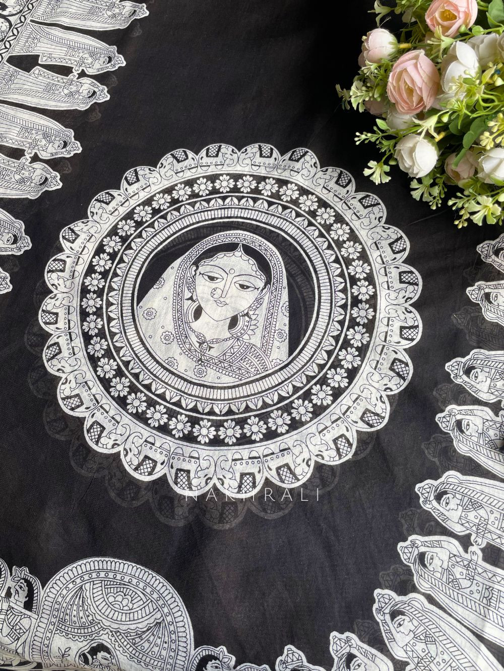Cynera Black Cotton Dress Material with Madhubani Art Print