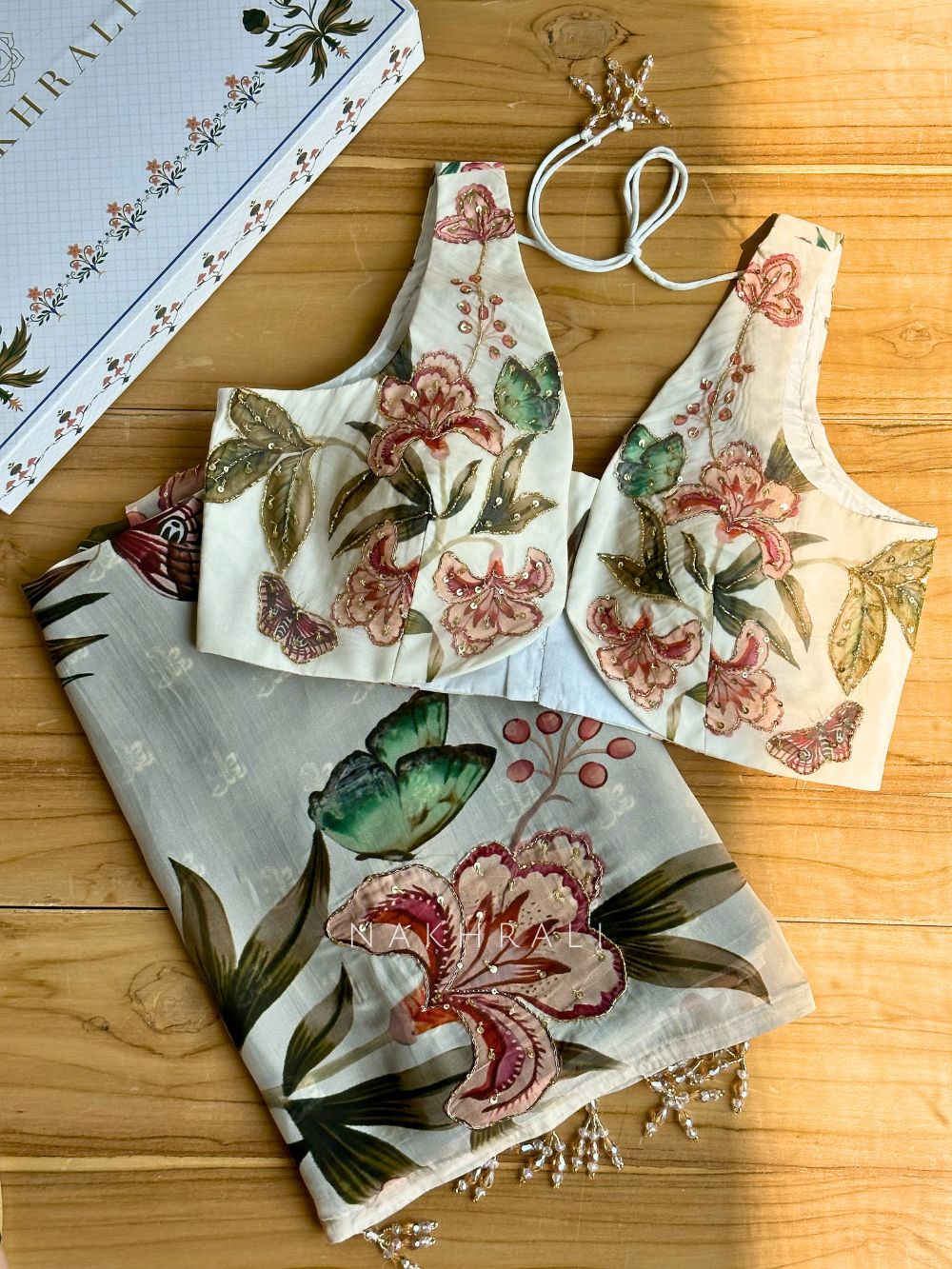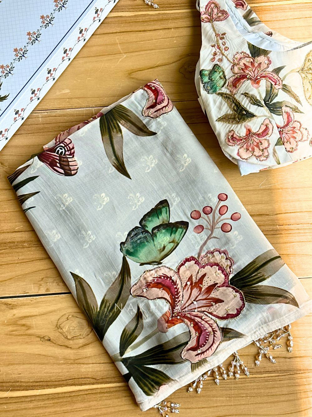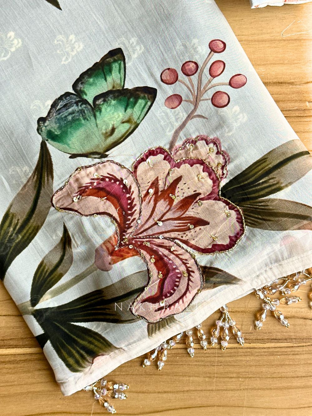 Lily Meadow Cream Saree with Sequin Floral Work
