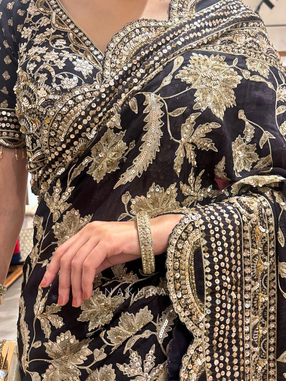 Dark Dazzle Black Saree with Sequin Embroidered Blouse