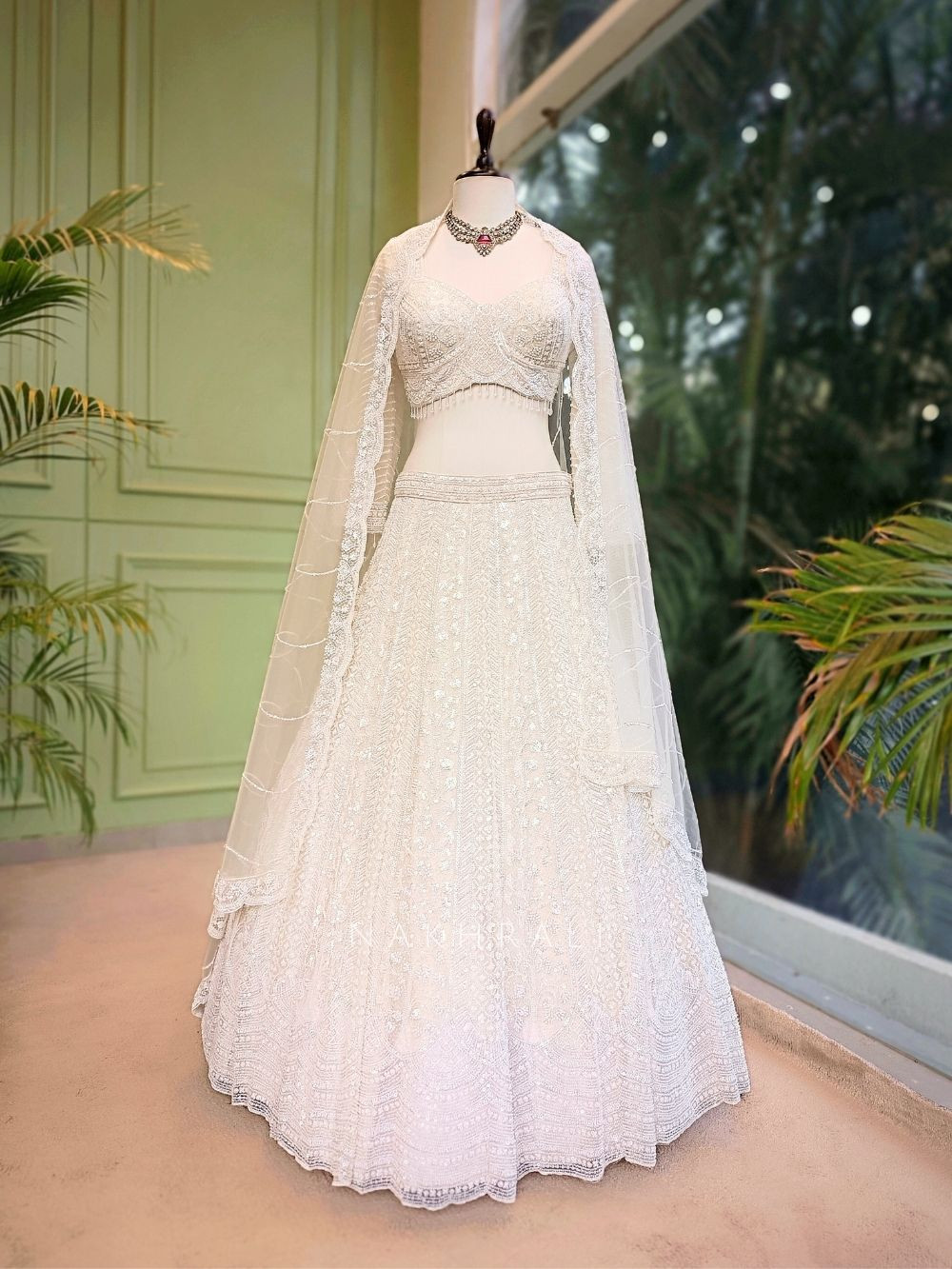 Divyana White Lehenga Set with Sequin Cut Dana Work