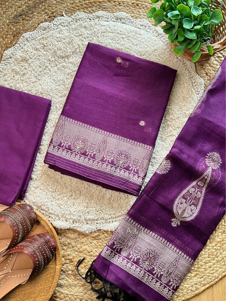 This stunning dress material set is perfect for creating a sophisticated ethnic look. The fabric features minimal woven motifs throughout, paired with an intricately designed border that adds a touch of traditional charm. Ideal for festive occasions, family gatherings, or casual ethnic wear, this piece offers a perfect blend of subtlety and elegance, making it a versatile choice for your wardrobe.