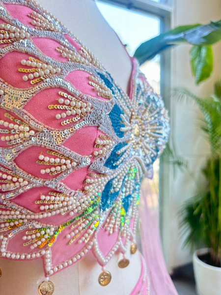Élise Bloom Pink Lehenga with Sequin, Cut Dana and Pearl Work