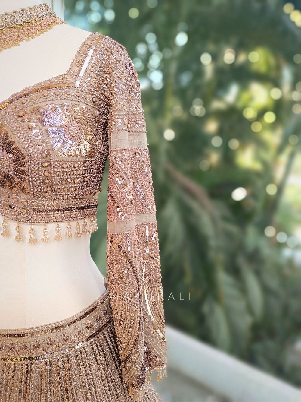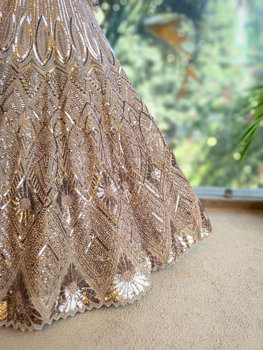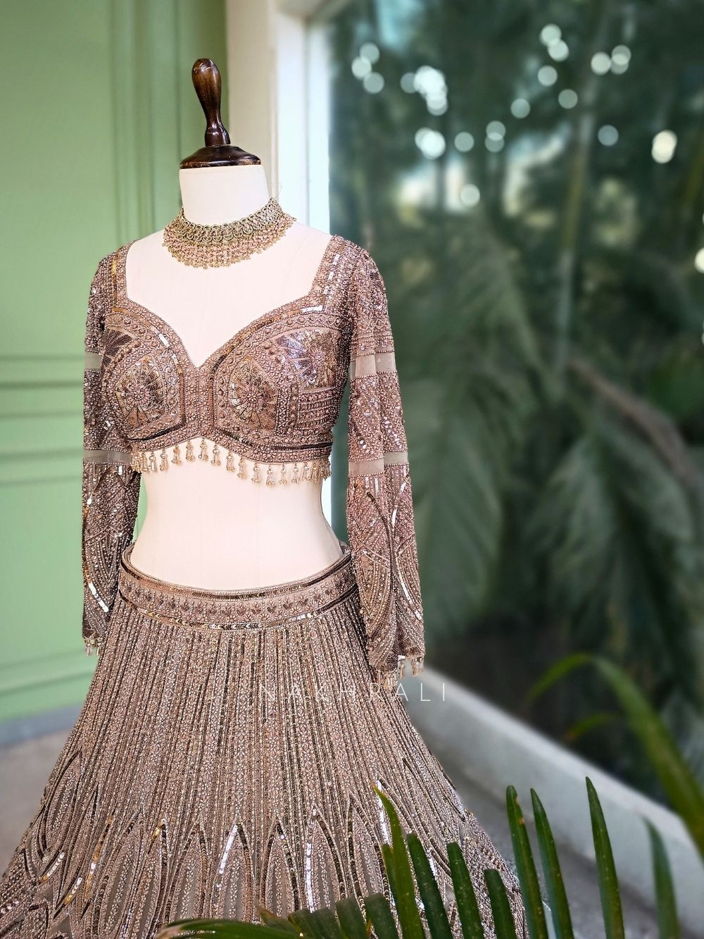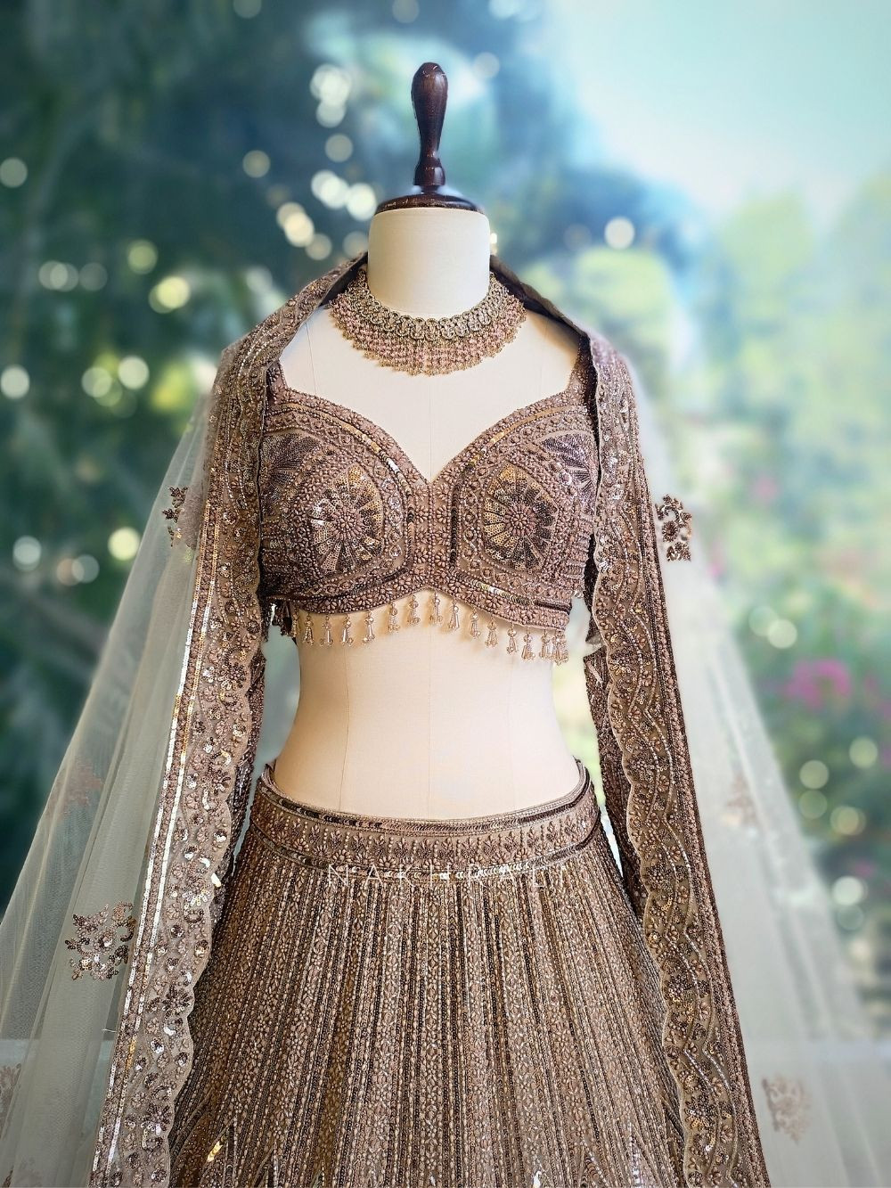 Wedding Events: Pair with kundan or polki jewellery and a sleek bun for a regal finish. Reception Nights: Style with statement earrings and soft waves to balance the richness of the embroidery. Festive Evenings: Opt for minimal jewellery and let the lehenga’s craftsmanship stand out.