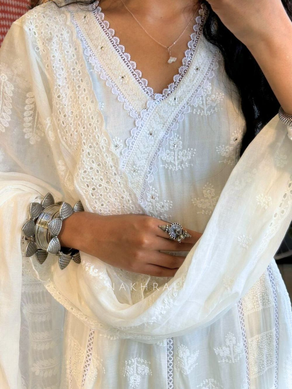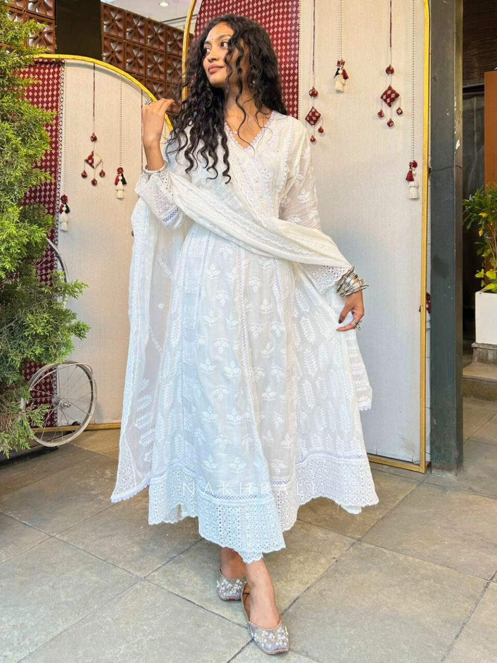 Evara White Lucknowi Anarkali Kurta Suit Set