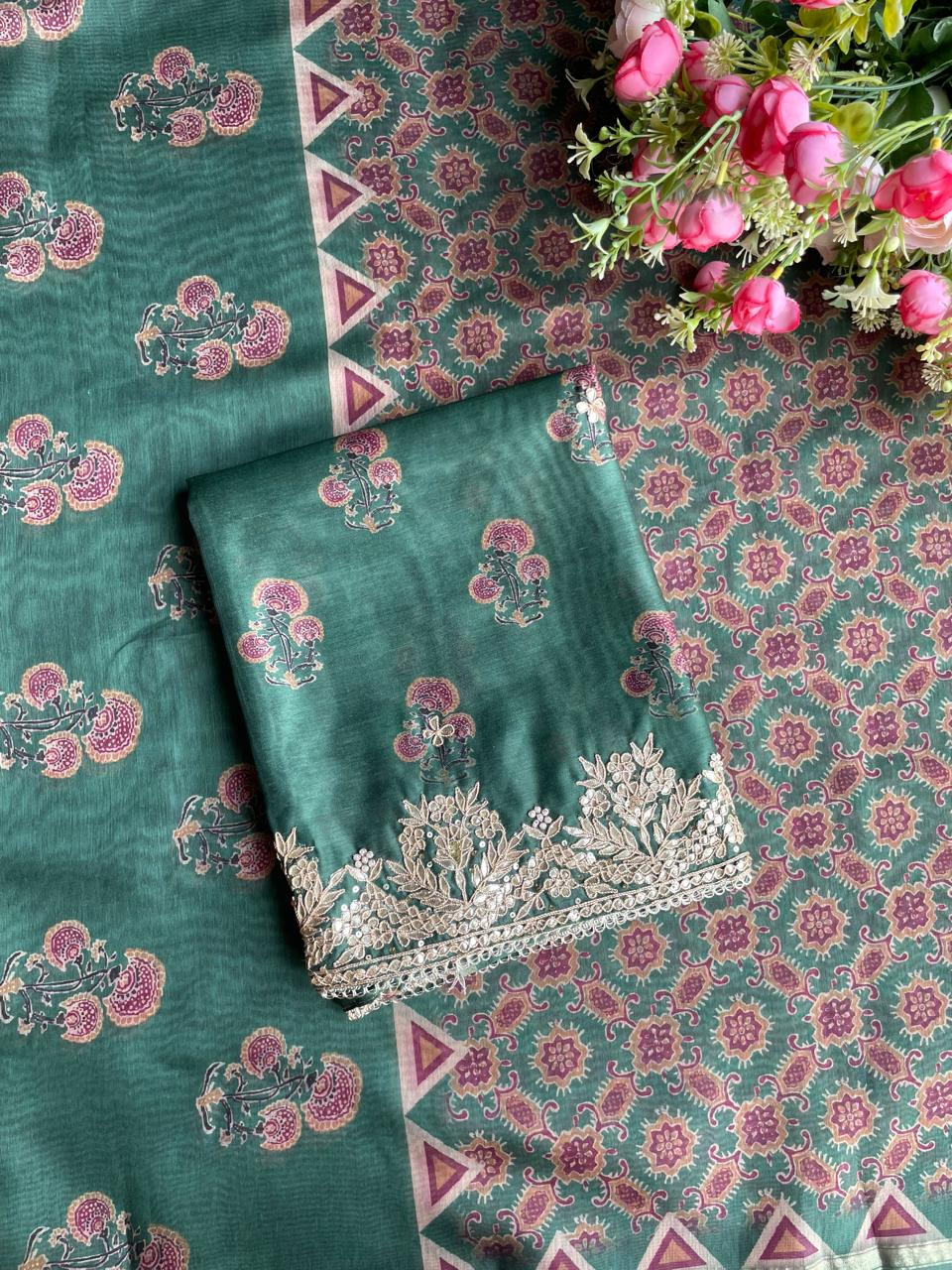 Green Grace Printed Dress Material with Embroidered Dupatta