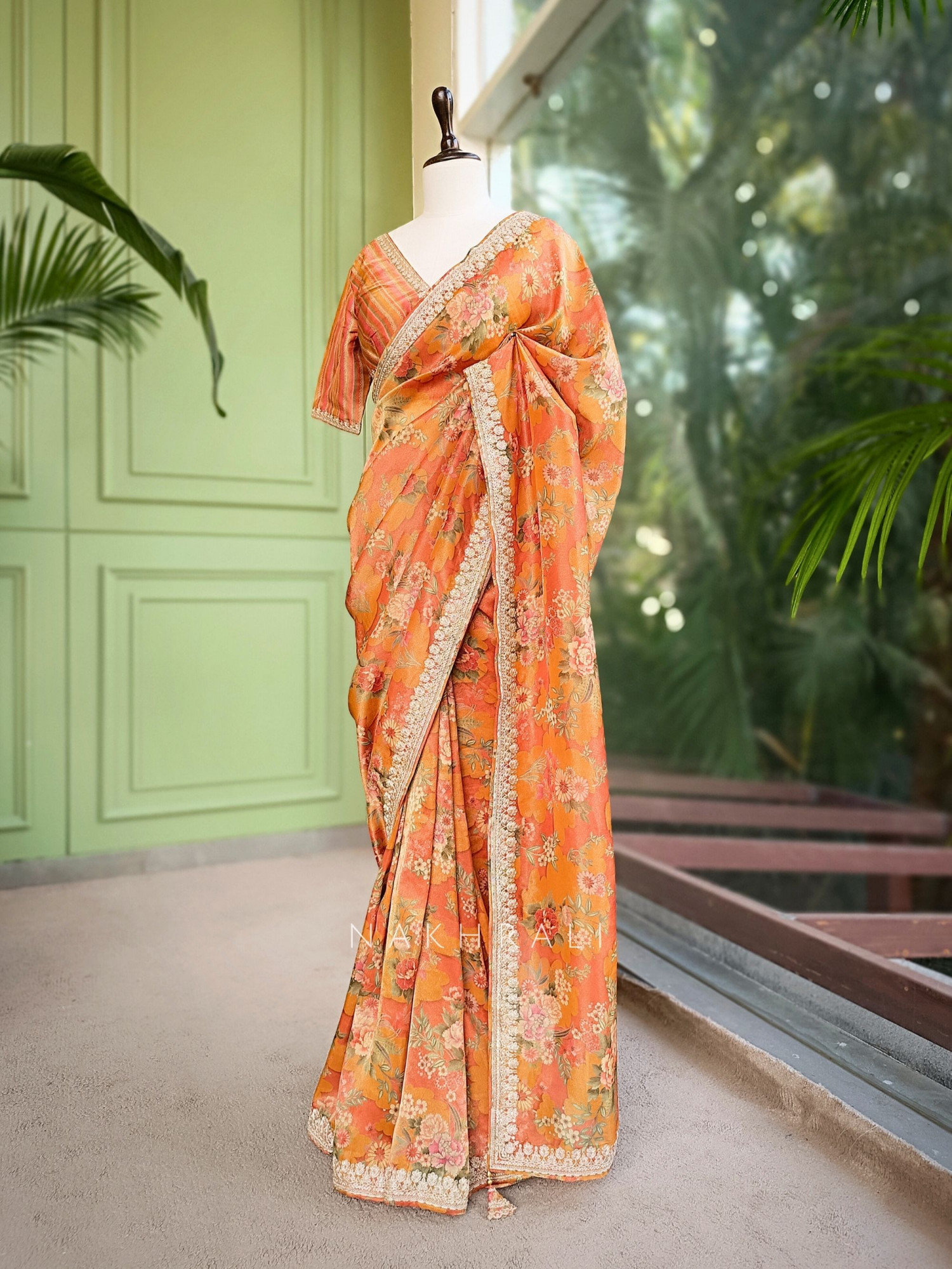Ishaya Orange Floral Saree with Embellished Border