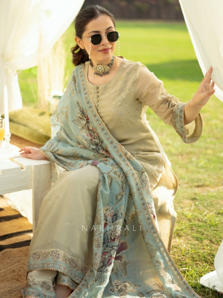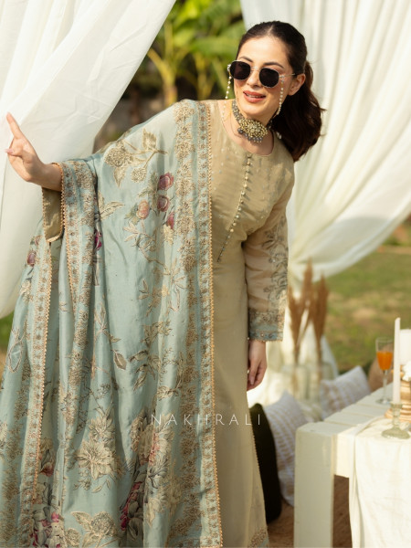 Ivory Glow is an ode to understated elegance. Crafted in a serene cream hue, this kurta palazzo set features fine thread embroidery delicately highlighted with minimal sequin accents, creating a soft, luminous finish. The flowy silhouette paired with a matching dupatta makes it perfect for daytime celebrations, intimate gatherings, or festive rituals where simplicity shines the brightest. With its breathable fabric and graceful detailing, Ivory Glow is a wardrobe essential for moments that call for poise without excess.