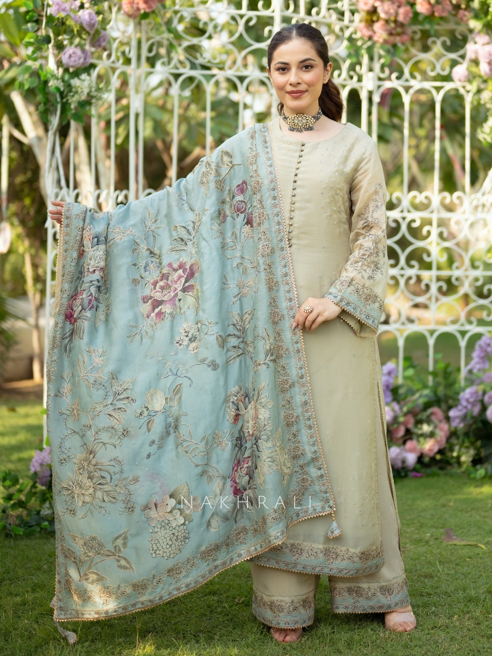 Pair with pearl jewellery and nude juttis for a refined glow.