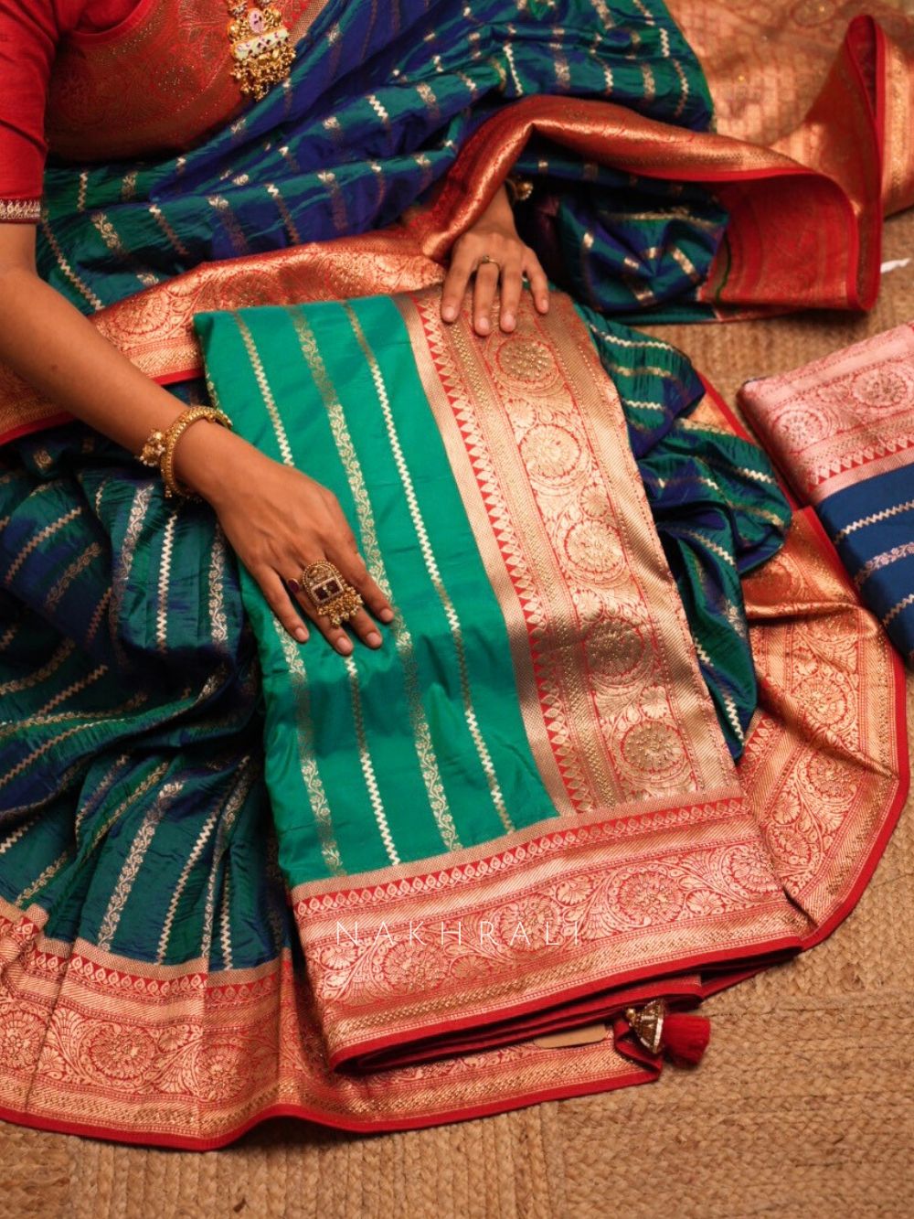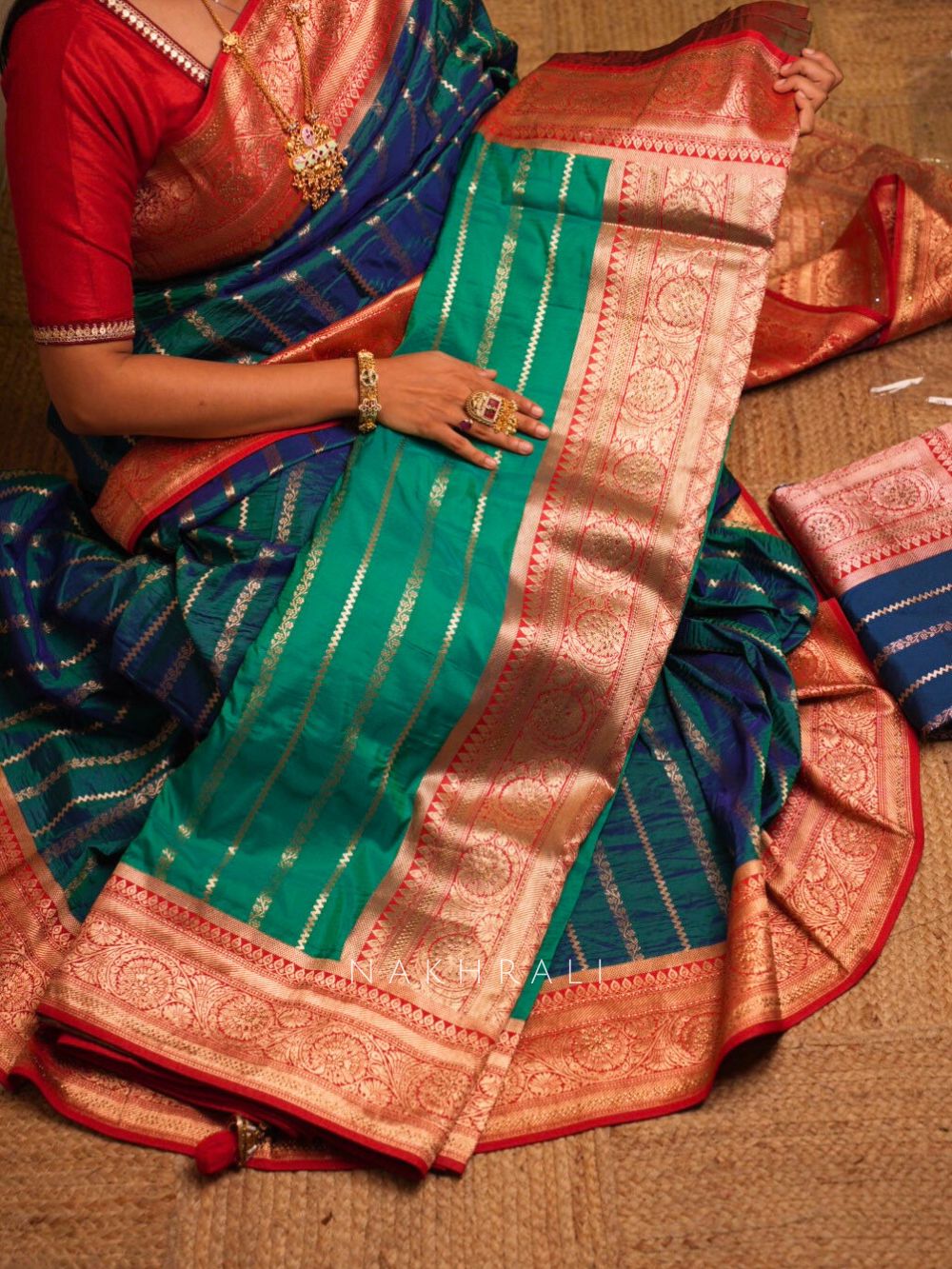 Kaashi Rama Green Banarasi Silk Saree with Brocade Pallu