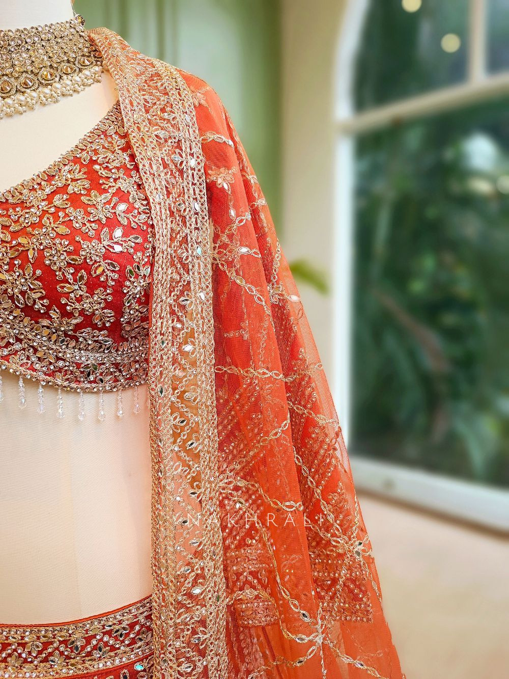 Dry clean only. Store in muslin to avoid fabric creasing. Keep away from moisture and perfume. Iron on reverse at low heat. Avoid folding along embroidered areas.