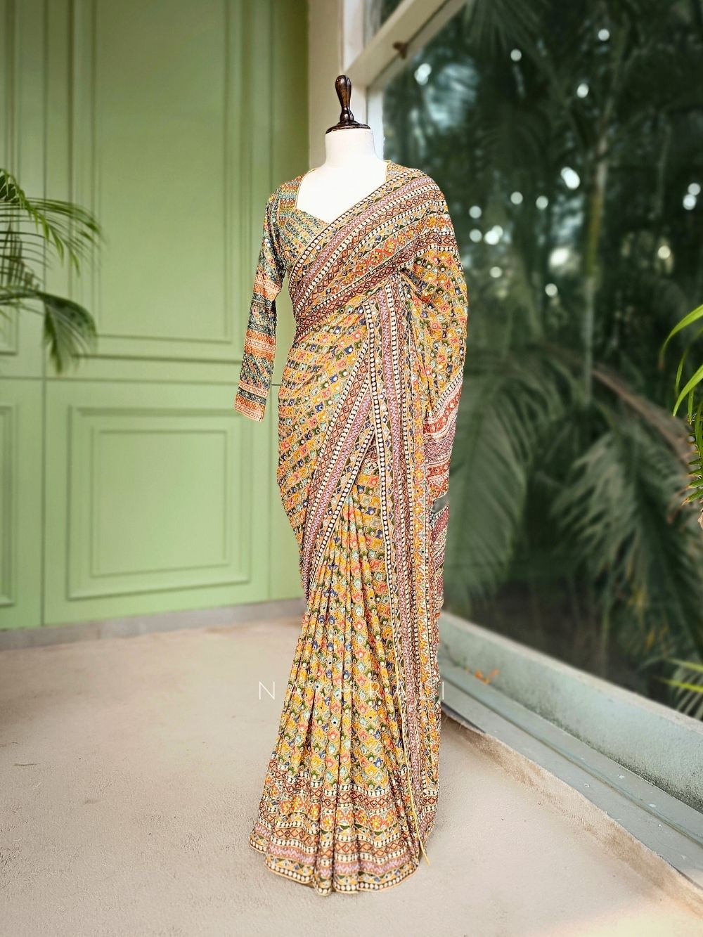 Wedding Functions: Pair with bold jewellery and a sleek bun to enhance the blouse detailing.