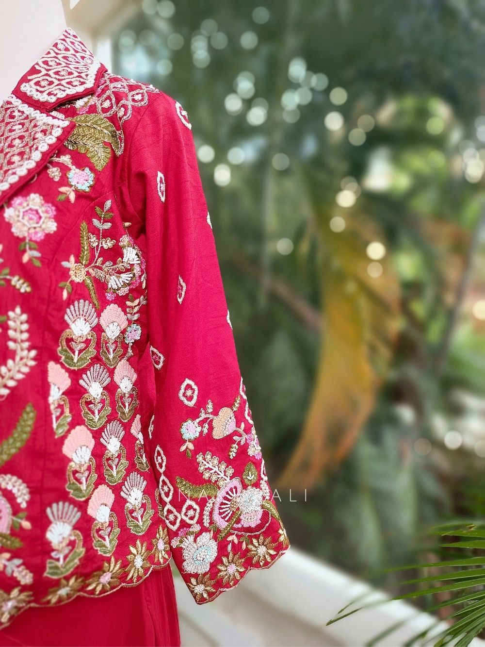 Dry clean only. Avoid direct perfume or deodorant on embroidery. Store in a cool, dry place wrapped in muslin cloth. Iron on reverse with low heat. Keep away from sunlight and moisture.