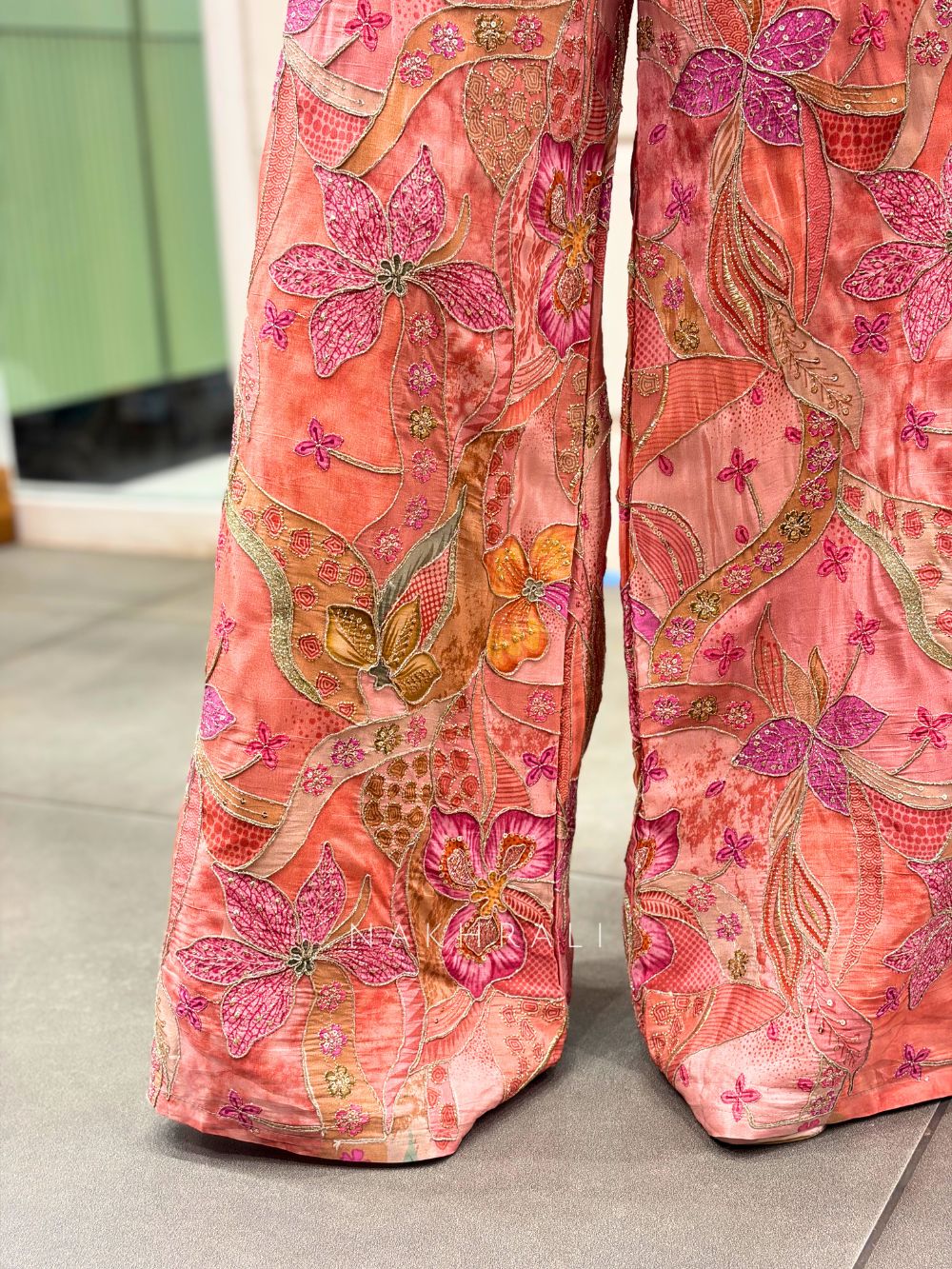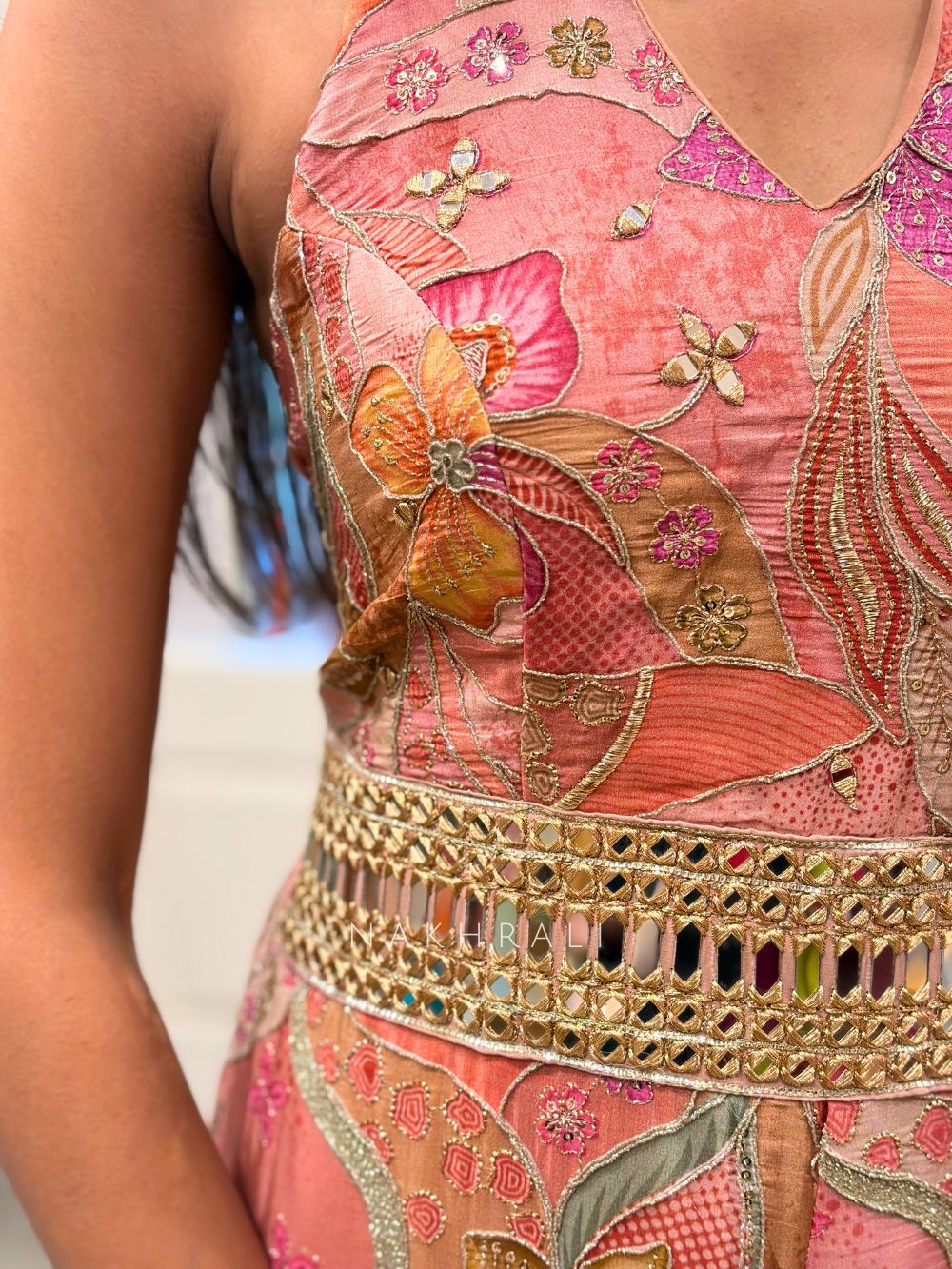 Kavrie Pink Floral Jumpsuit with Embroidery and Mirror Work