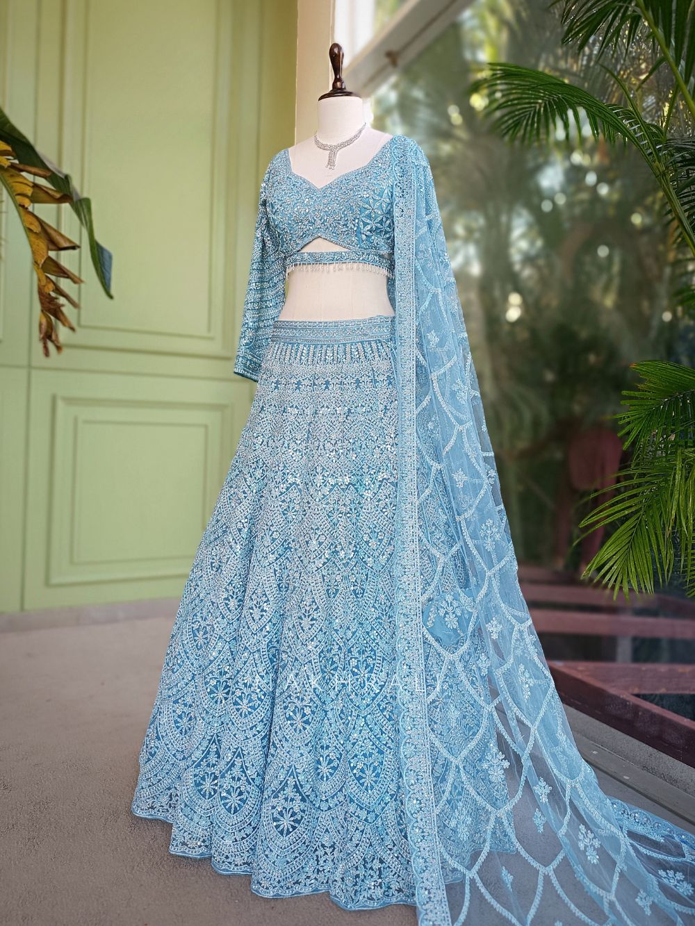 Sangeet Celebration: Add lighter jewellery and soft glam makeup to maintain comfort while keeping the outfit radiant.