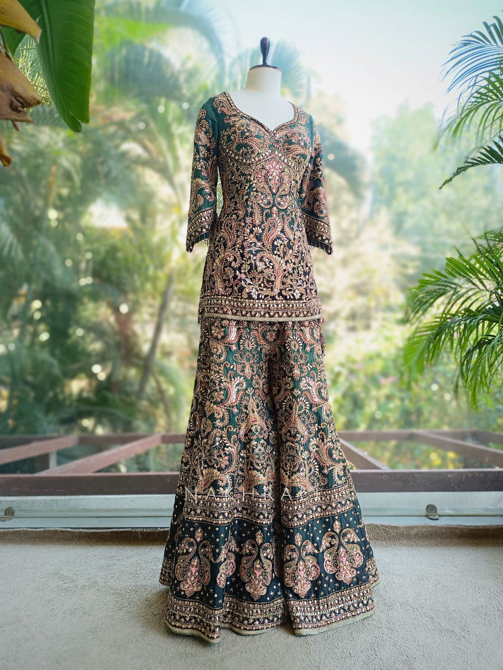 • Store flat or hang carefully to preserve the gharara flare