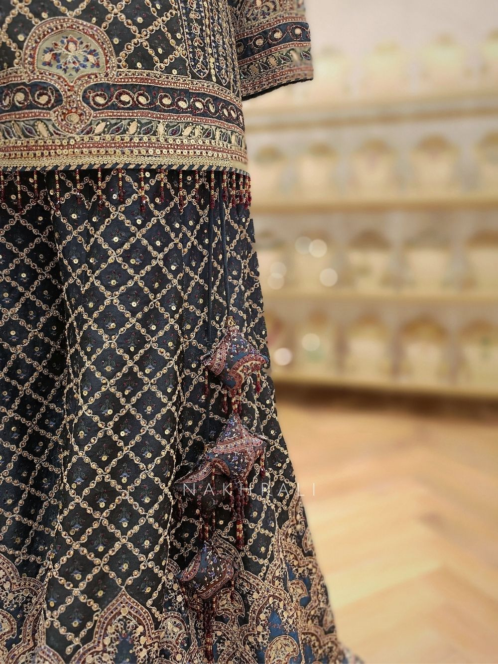 • Dry clean only to maintain the zari and sequin work