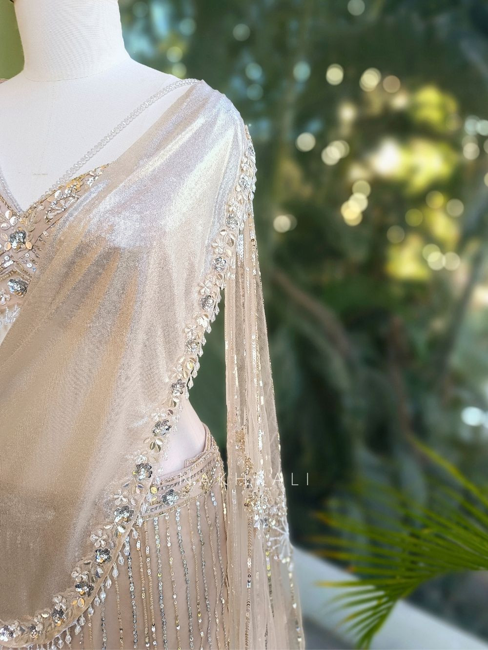 Lioré Beige Indo-Western Lehenga with Sequin and Leaf Work