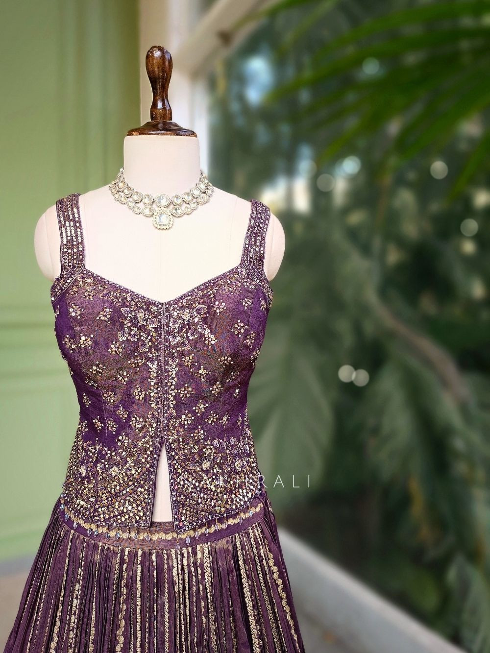Lyra Purple Lehenga with Gold Zari and Sequin Work