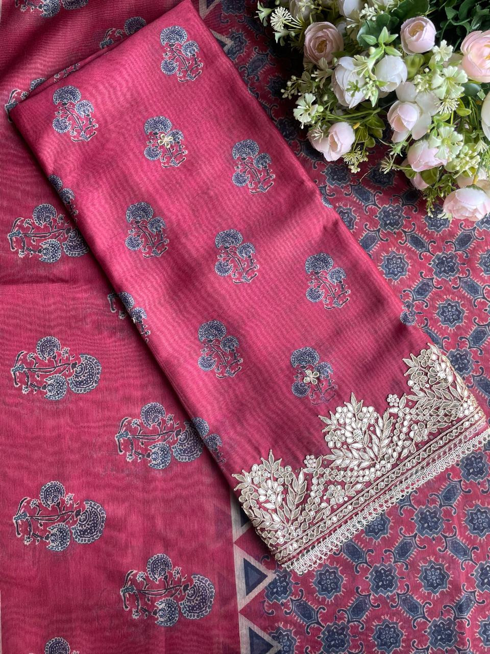 Maroon Grace Printed Dress Material with Embroidered Dupatta