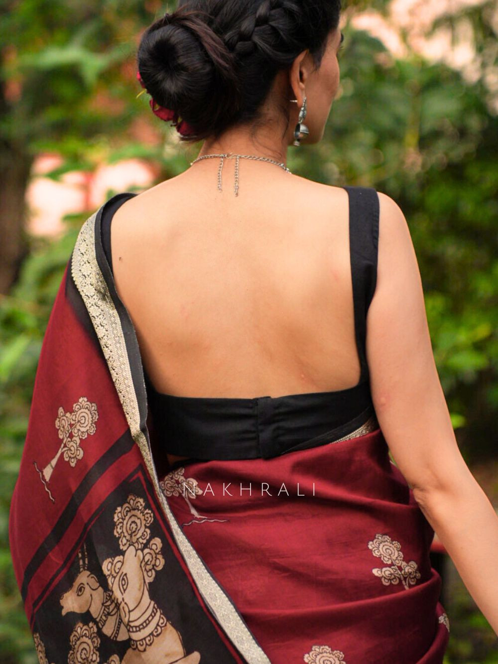 Mastani Black Cotton Blouse with Square Neck on Both Sides